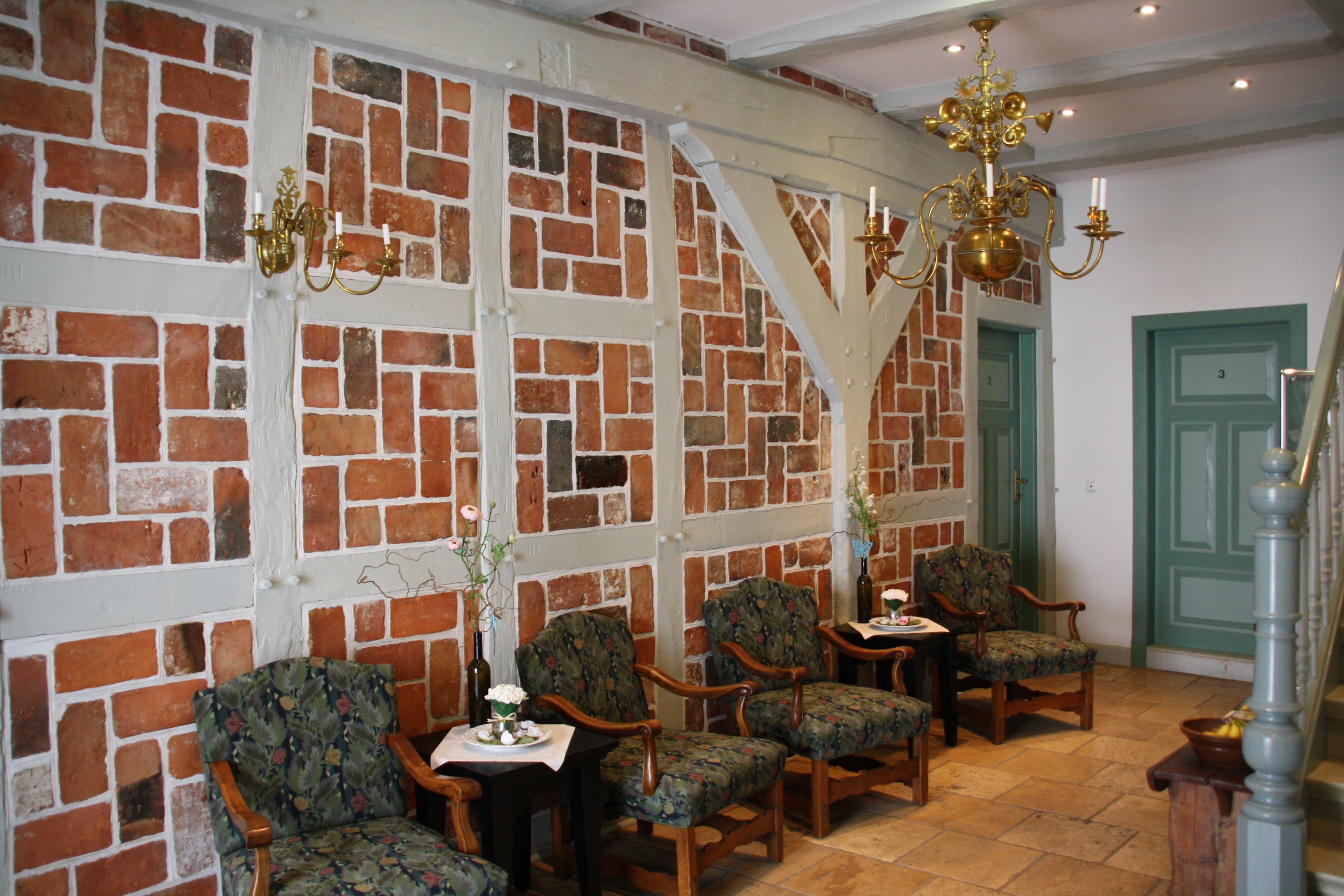 Das behutsam sanierte Baudenkmal empfängt Sie in der hohen Diele mit einem glänzenden Messingleuchter. Der mächtige Hausbaum und die Fachwerkwand mit Zierausmauerung belegen noch heute die bedeutende wirtschaftliche Stellung der Brauer der Stadt. Im Erdgeschoss befinden sich fünf Gästezimmer und ein gemütlicher Frühstücksraum. Über die historische Treppe gelangen Sie in das Obergeschoss. Dort befinden sich weitere Gästezimmer und die Eingänge zu den großzügig gestalteten Suiten.