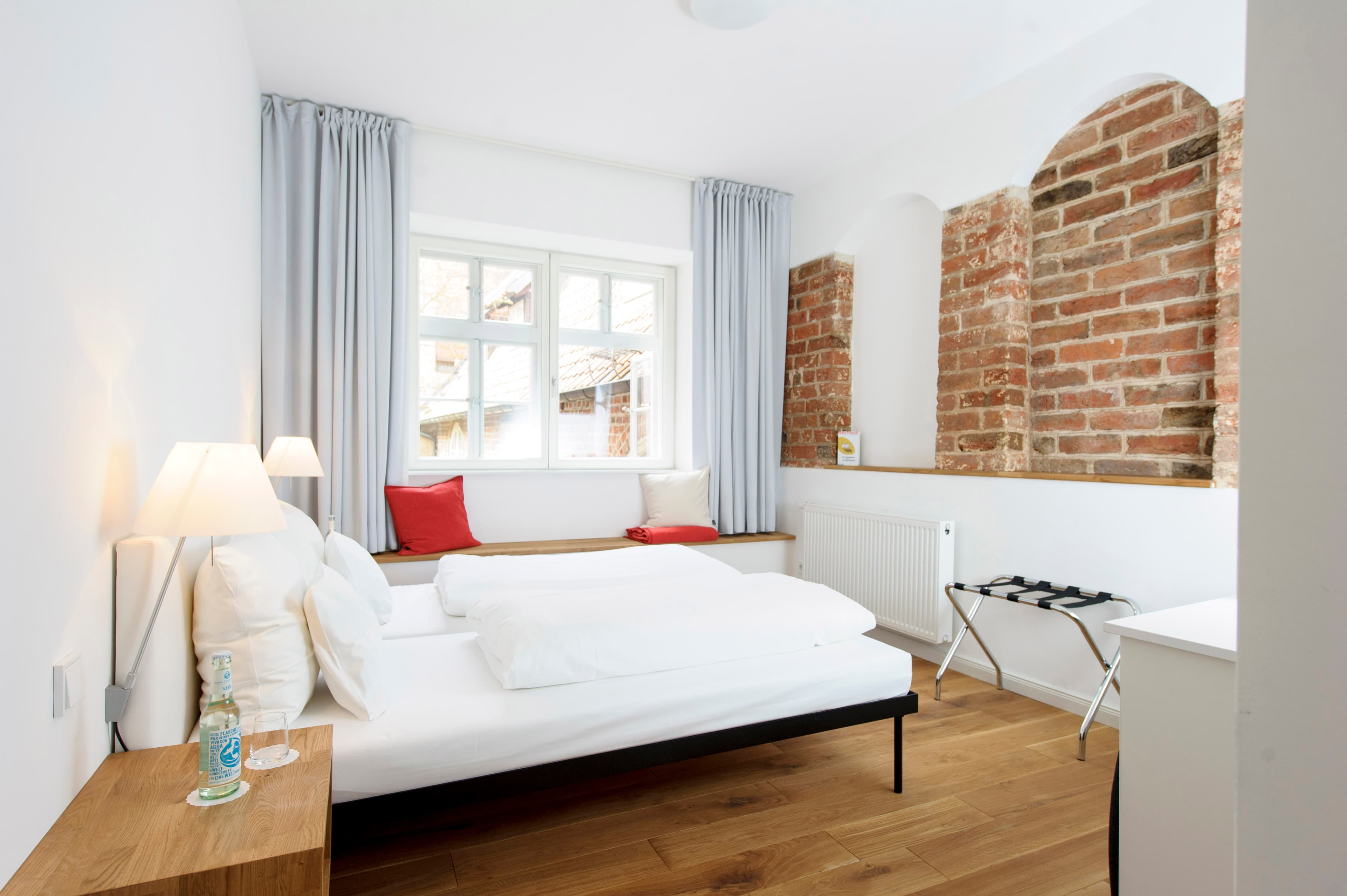 Jedes unserer Zimmer ist anders und hat etwas Besonderes: die herrliche Aussicht, das Stück alte Ziegelmauer, den perfekten Platz für das Sofa, die Fensterbank zum Sitzen. Das schlichte, skandinavische Design hebt den ganz eigenen Charakter eines jeden Zimmers hervor. Unsere Einzelzimmer haben wir mit genauso viel Liebe und Sorgfalt ausgestattet wie alle anderen Räume des Hotels. Zum Beispiel mit alten Holzdielen und echter Kunst an den Wänden. Individuell, harmonisch und angenehm zurückhaltend, damit Sie sich bei uns wohlfühlen. Luftig und hell – mit zwei separaten Betten nebeneinander eignen sich unsere Doppelzimmer genauso für Freunde wie für Pärchen.