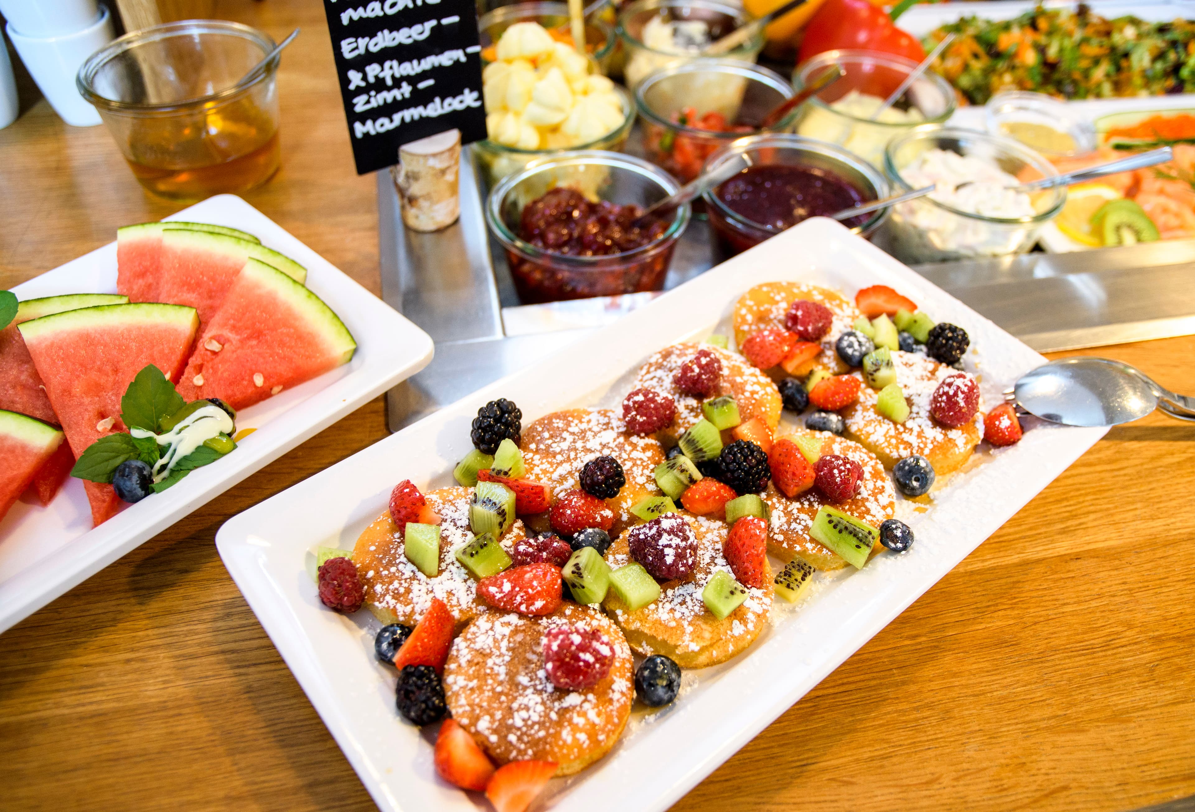 Wir servieren ein individuelles reichhaltiges Frühstück. Dafür verwenden wir überwiegend Produkte aus Bio-Anbau und fairem Handel.