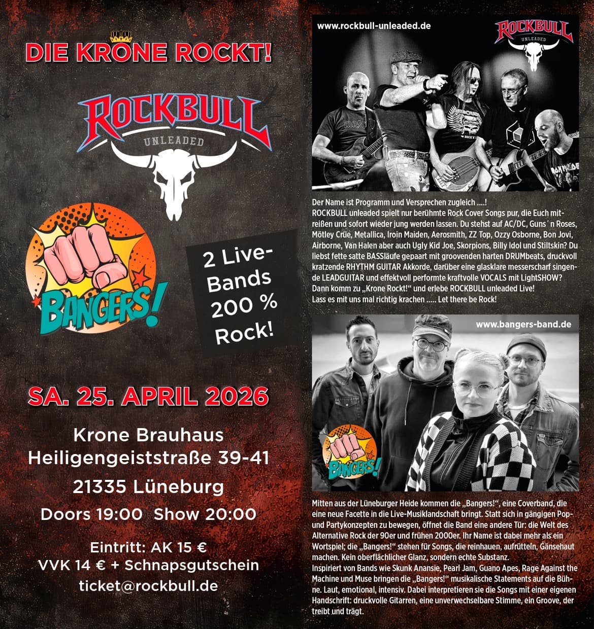 Lüneburg🔥ACHTUNG Rockfans!!!🔥bald ist es soweit : 🎸“DIE KRONE ROCKT!“ am 25.04.26🎸 Ticketvorverkauf für 14 € inkl. Schnapsgutschein (Abendkasse 15 €) läuft ! Interesse ?