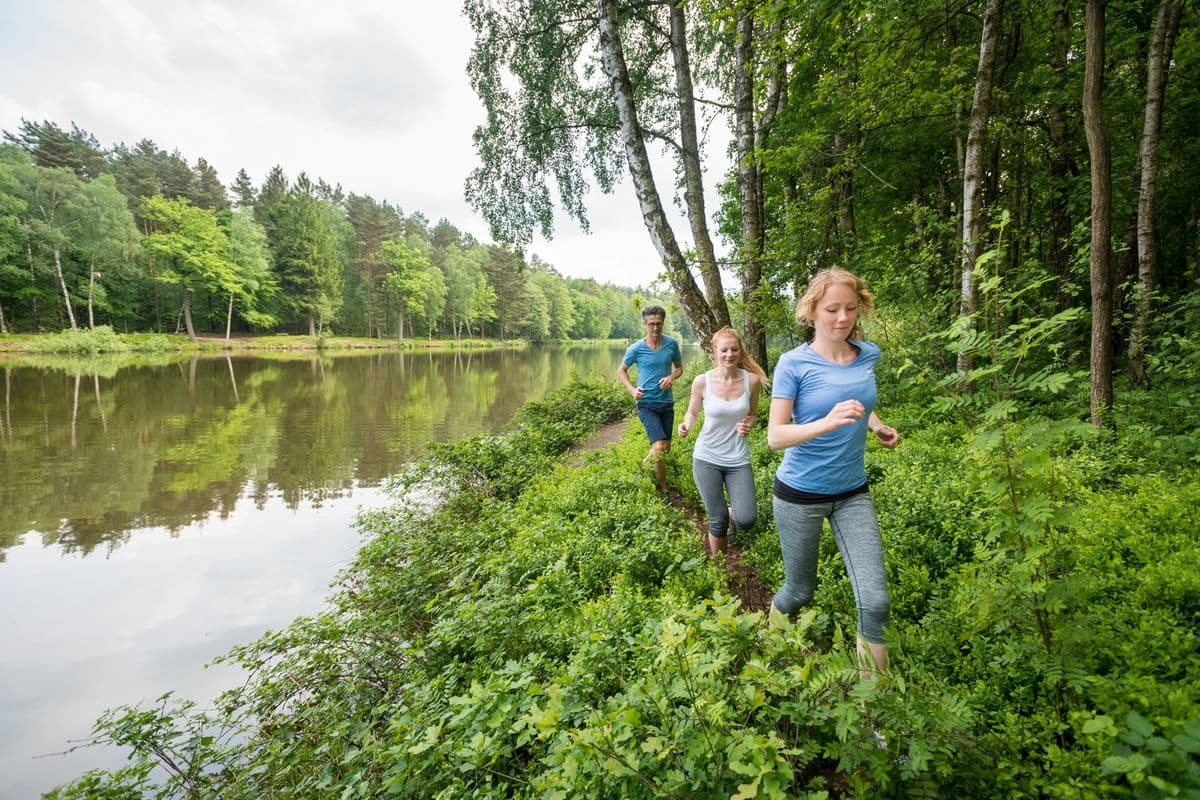 Um das zu testen, folgen wir einer der zahlreichen Wander- und Nordic-Walking-Routen aus dem Ortskern hinaus durch die Birkenwälder in die Heideflächen. Der schnelle Wechsel der Landschaft um uns herum zeigt, wie vielfältig sich der Naturpark für Läufer präsentiert: Die breiten Hauptwege sind gut für Einsteiger geeignet, während auf verschlungenen, anspruchsvollen Pfaden auch trainierte Läufer auf ihre Kosten kommen. Und unterschätzen sollte man die vermeintlich flache Heide auch nicht, denn sie hat überraschend viele Steigungen zu bieten.