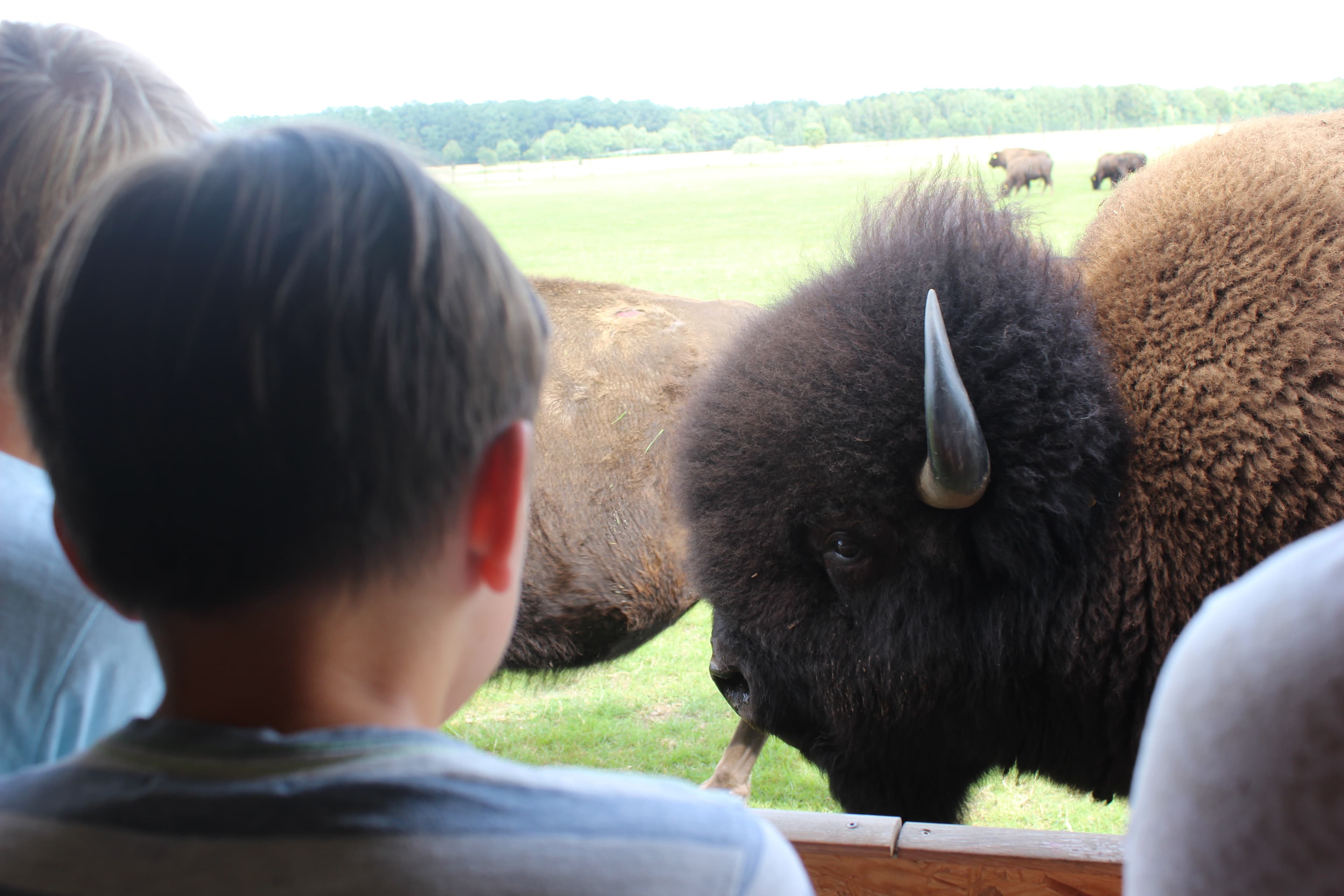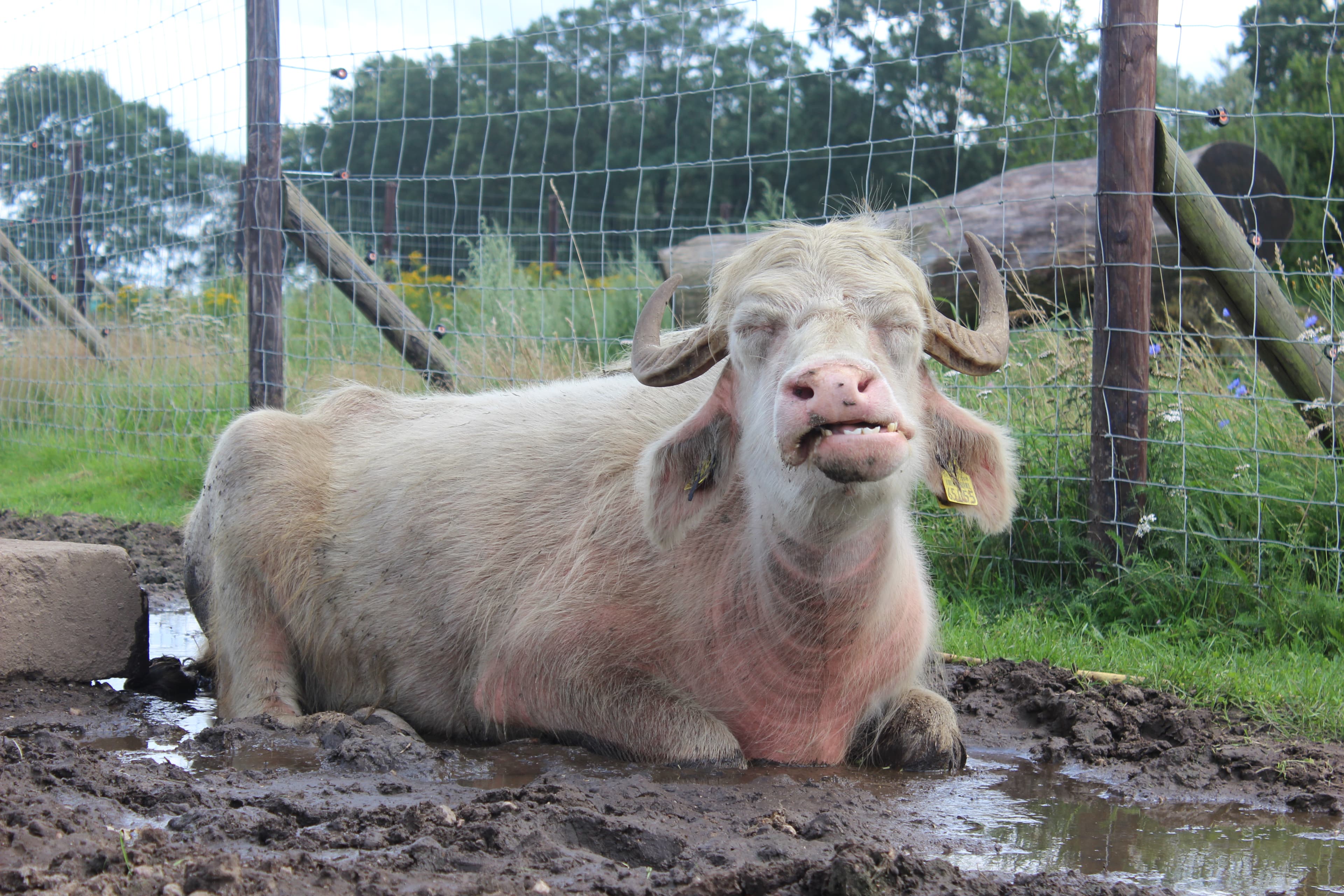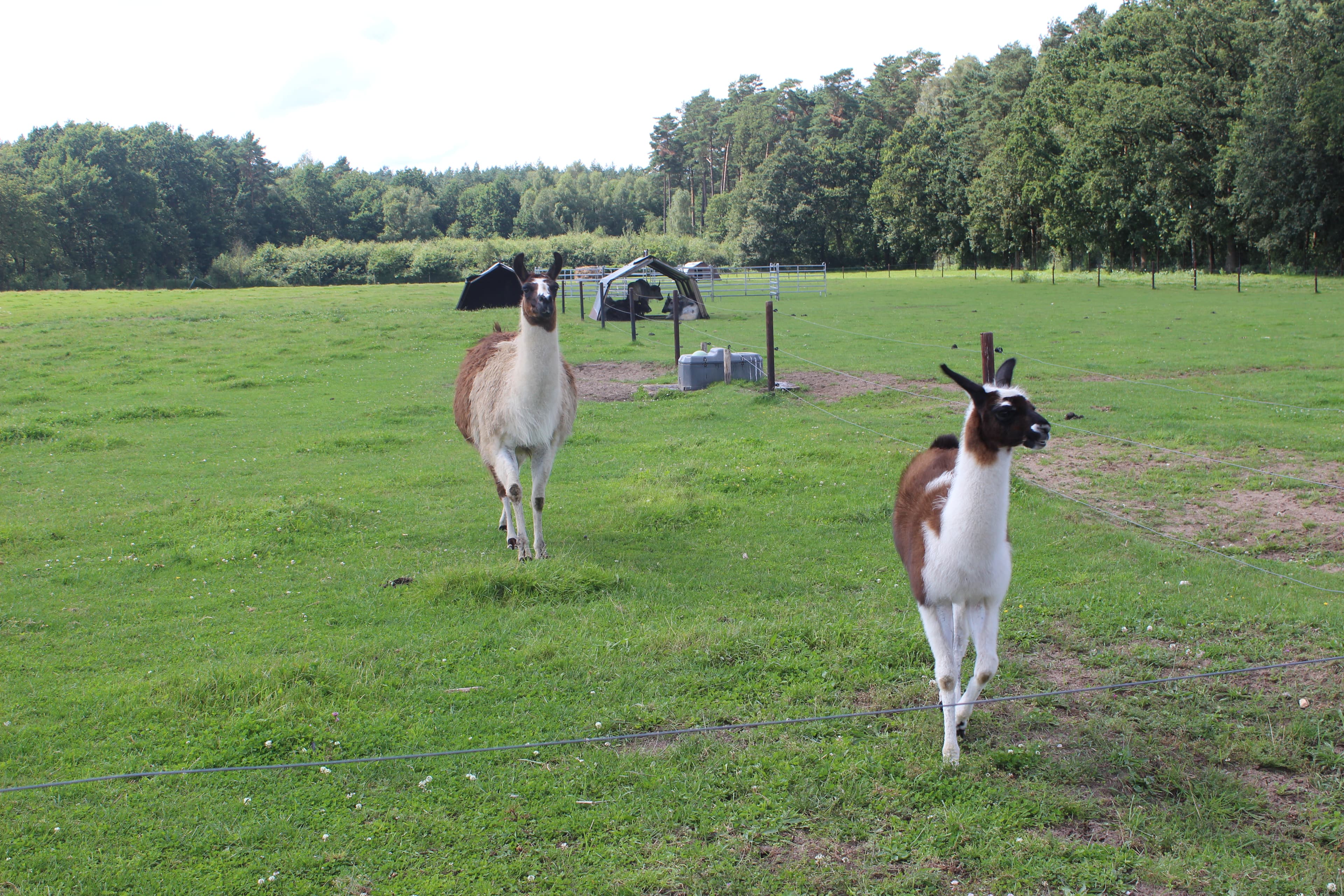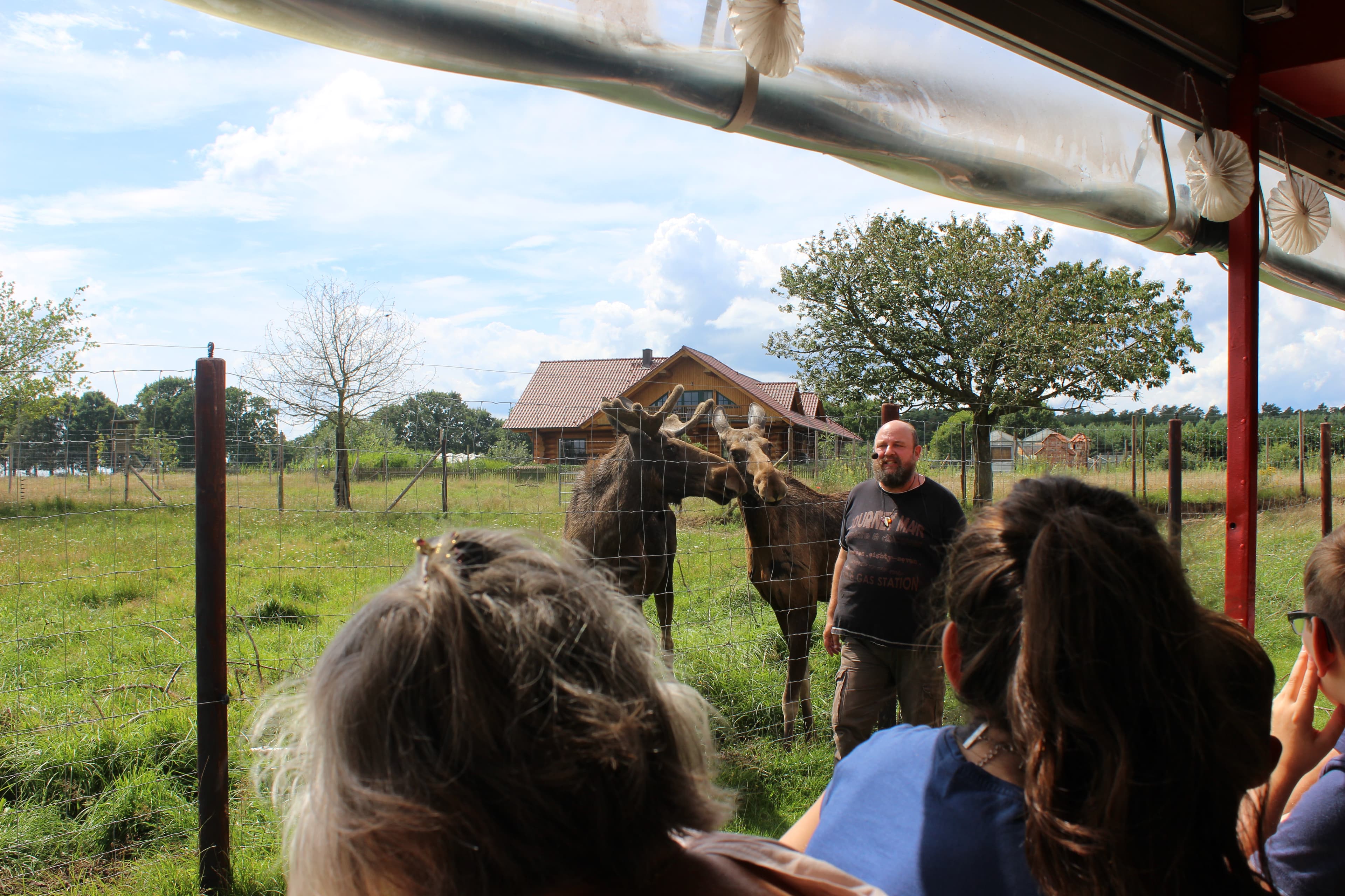 Damit man sich vor dem Genuss eines Rinder-, Bison- oder Büffelsteaks zunächst selbst von der artgerechten Haltung der Tiere überzeugen kann, geht’s mit dem Traktor mit Anhänger samstags und sonntags auf Nutztiersafari. „Safari Ranger“ Thomas Bielstein fährt Interessierte durch das unendlich weit erscheinende Gelände und weiß zu nahezu jedem Elch und jedem Zebu eine Anekdote zu berichten. Wenn Hirsch, Wollschwein und Lama hier eins haben, dann ist es Platz zum Leben. Nach zwei Stunden mit zahllosen Stops bei verschiedenen vor allem alten und exotischen Tierrassen geht’s zurück zum Hofgebäude. Unzählige Stallungen und Gehege können hier auch zu Fuß in Augenschein genommen werden.