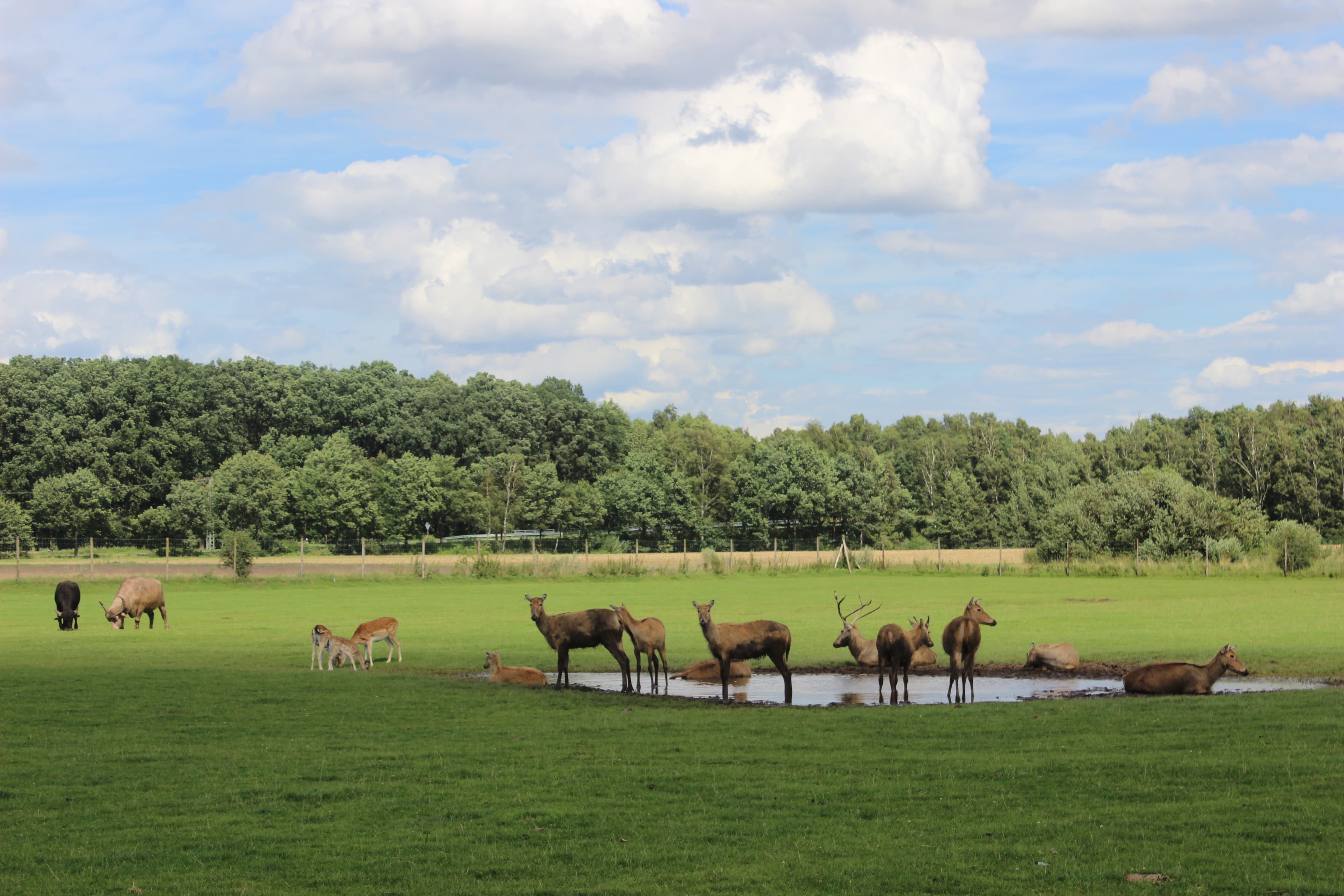 Angusrinder, Amerikanische Prärie-Bisons, Mongolische Yaks, Damwild, Gänse,