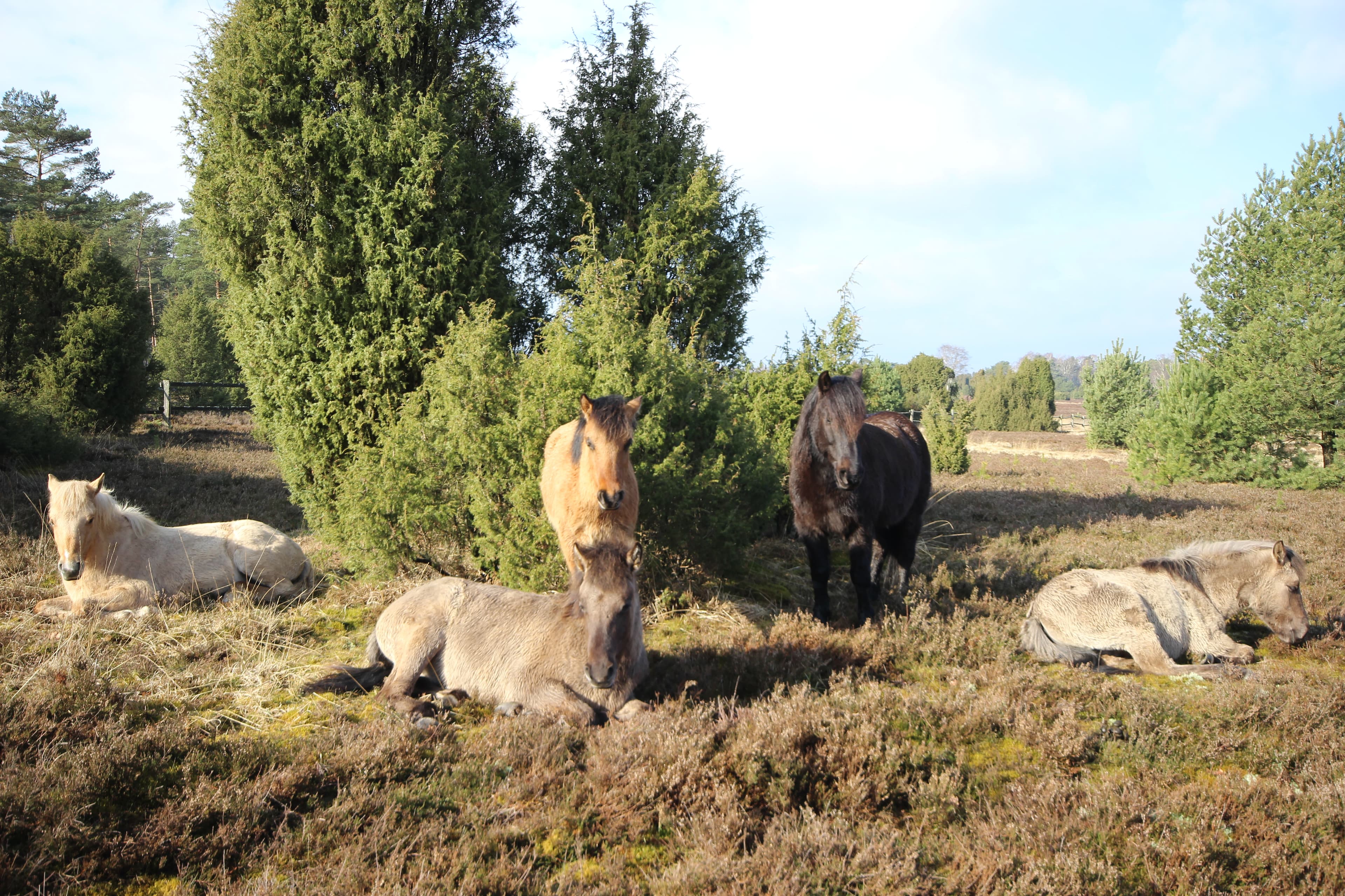 Die Pferde sollen hier im Naturschutzgebiet der Lüneburger Heide die feuchten Bachniederungen von Schwarzer Beeke und Schmaler Aue offen halten und in den angrenzenden Heideflächen Drahtschmiele und Pfeifengras verbeißen.