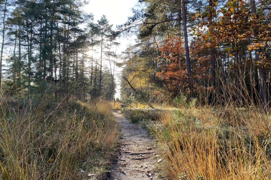 Das will ich mir nicht entgehen lassen und beobachte auf all meinen Wetter-Apps die Vorhersagen. Die Entscheidung fällt schwer: sollen es die gelb gefärbten Birken im Morgennebel der Oberoher Heide sein? Oder vielleicht der herbstlich leuchtende Lüßwald in den Mittagsstunden? Ich entscheide mich für eine Wanderung auf der Heideschleife: „Auf sandigen Pfaden ins tiefe Tal“ und habe wirklich Glück! Bei Ankunft auf dem Parkplatz Misselhorner Heide reißt der Hochnebel auf und die Sonne begleitet mich fortan auf der knapp 8 Kilometer langen Tour.