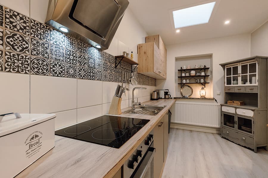 - voll ausgestattete Küche mit ausreichend Geschirr und Besteck