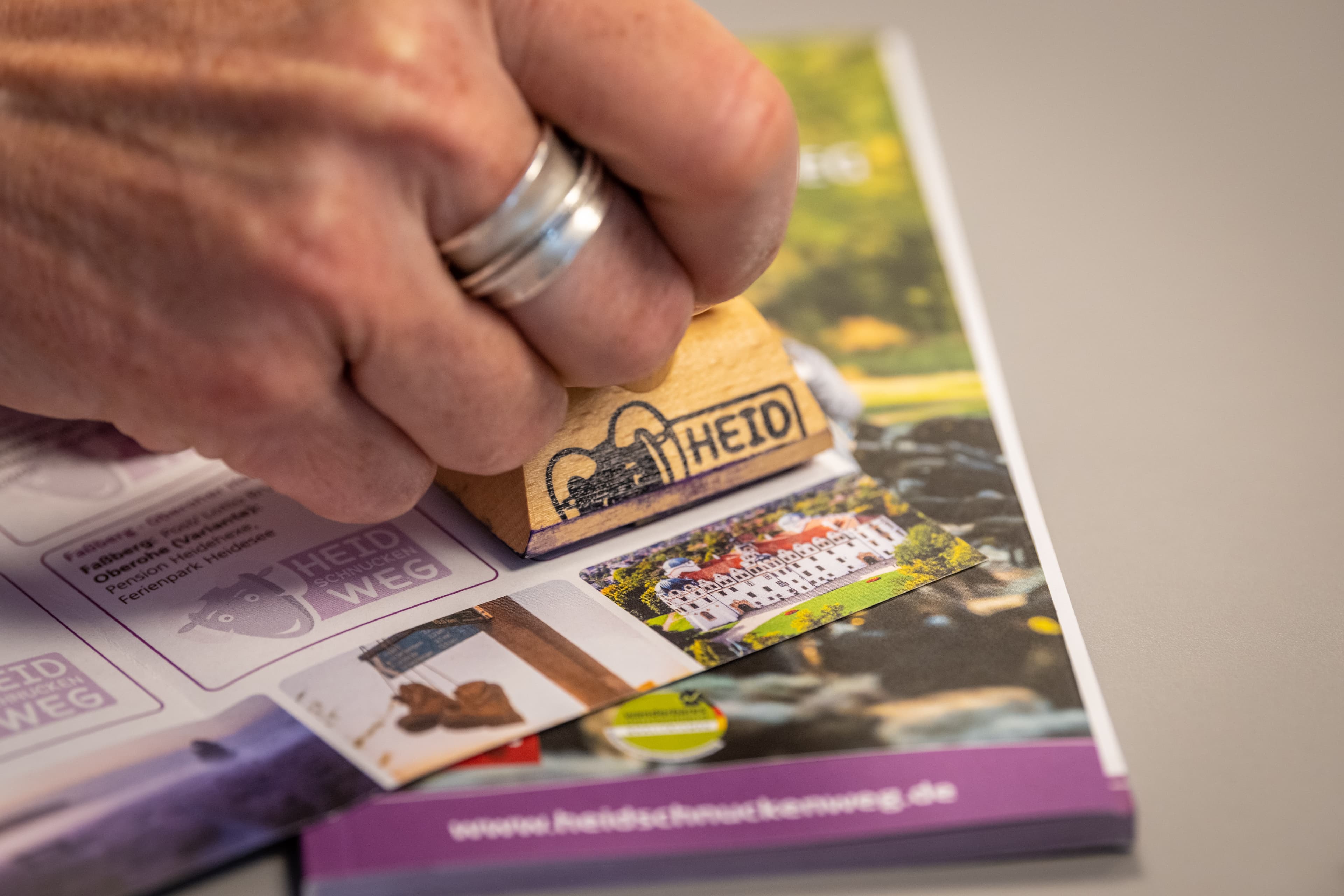 Stempel erwandern - Heidschnuckenweg-Pin als BelohnungSammeln Sie bei Ihrer Wanderung Stempel auf dem Heidschnuckenweg Wanderpass und erhalten Sie einen Heidschnuckenweg-Pin als Belohnung