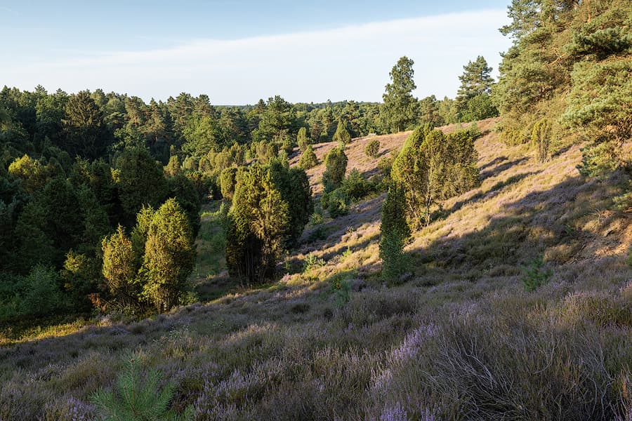 Von dem alten Heidebauerndorf Borstel aus, im Tal des Flusses Brunau, lässt sich ein traumhaftes, tief abfallendes Heidetal zu Fuß entdecken. Wacholderbüsche und Birken durchziehen die Heidefläche und schmücken das Landschaftsbild.