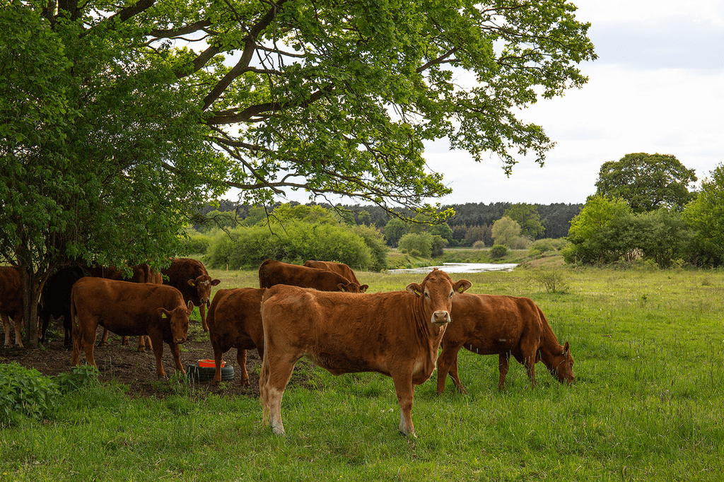 Die Wiesen und Weiden werden naturverträglich bewirtschaftet, damit der Weißstorch hier nach Regenwürmern, Heuschrecken und Fröschen suchen kann.