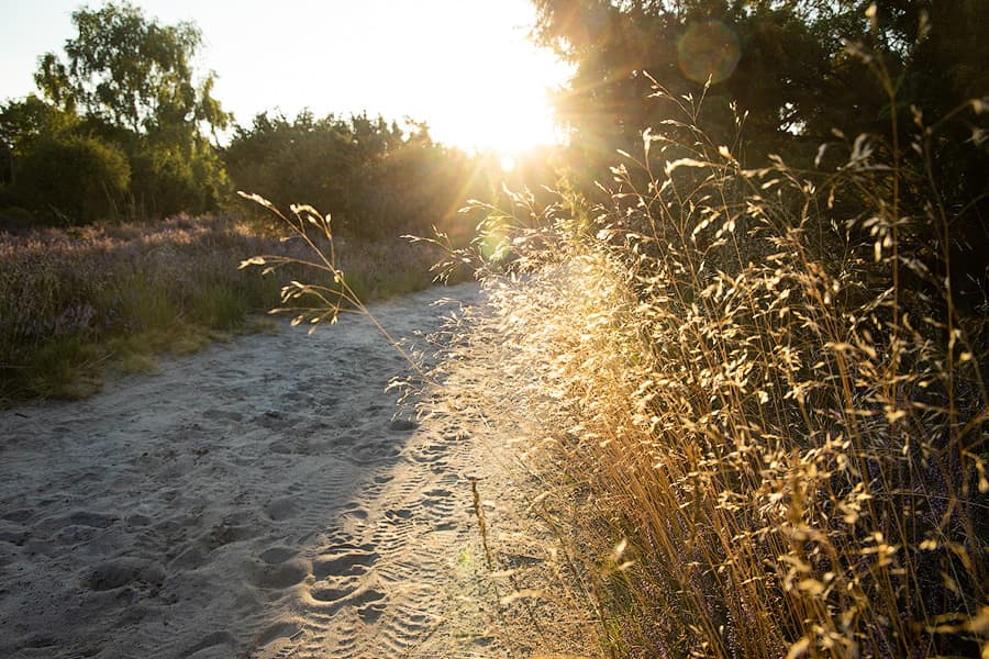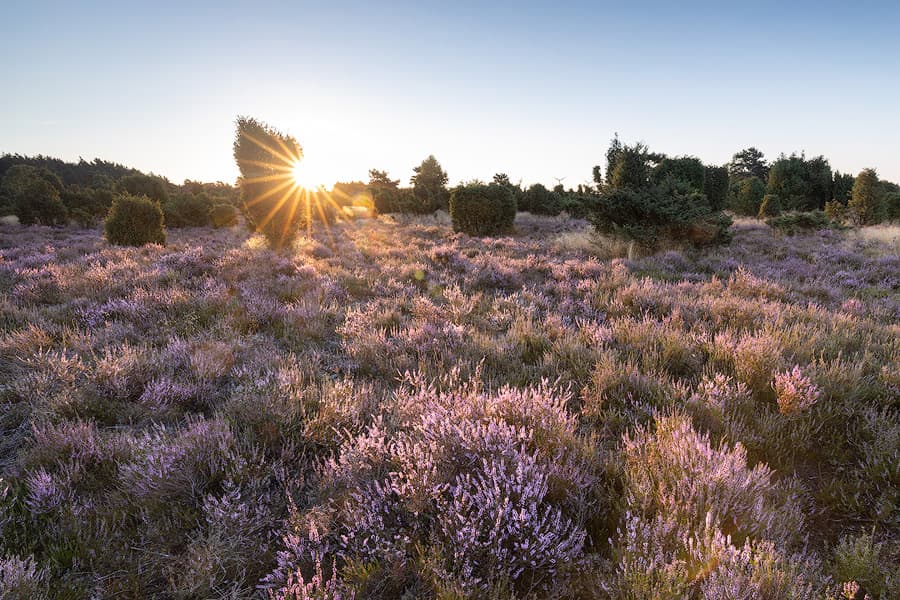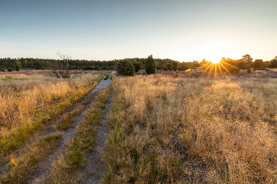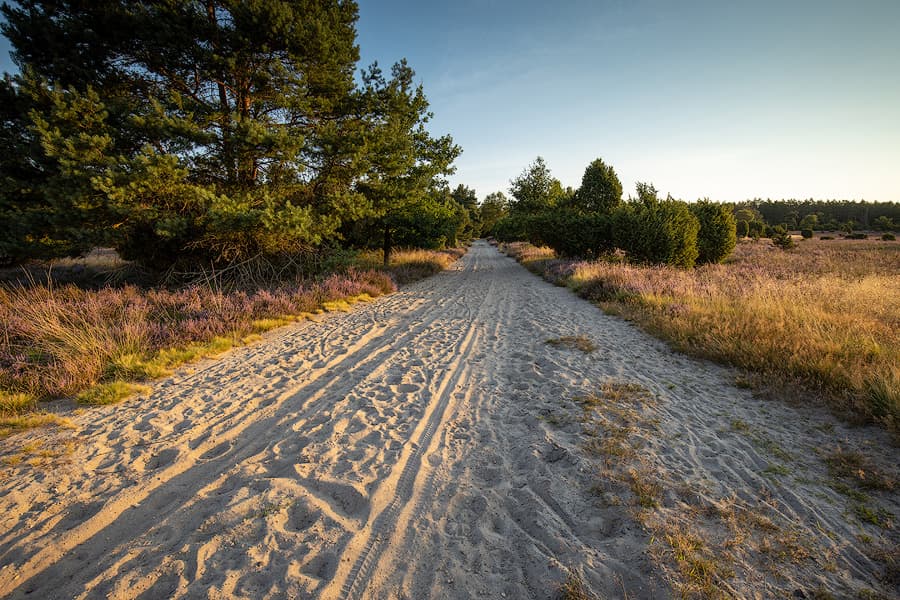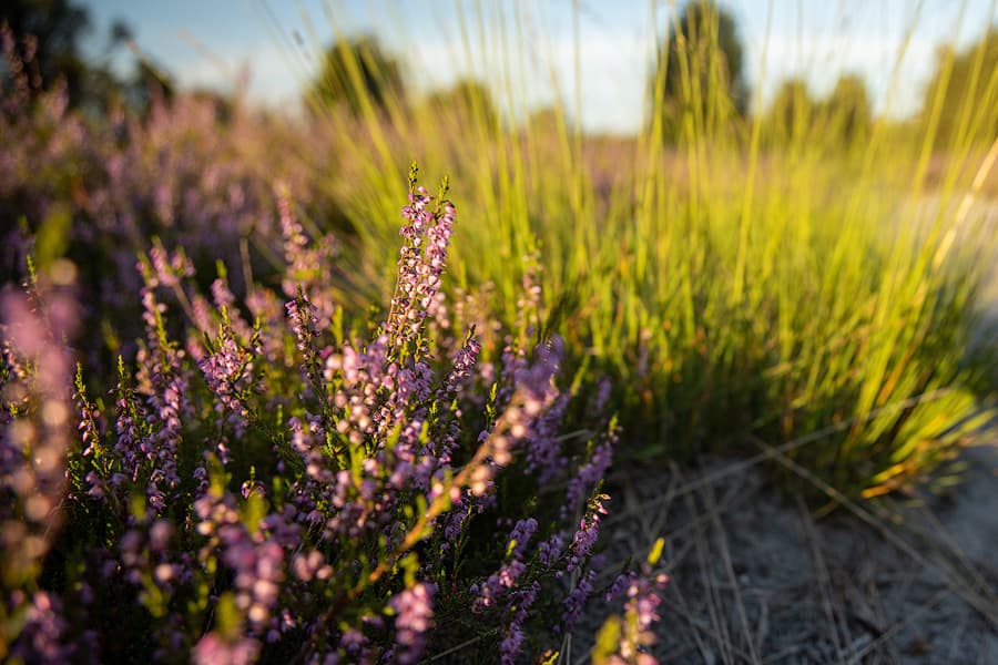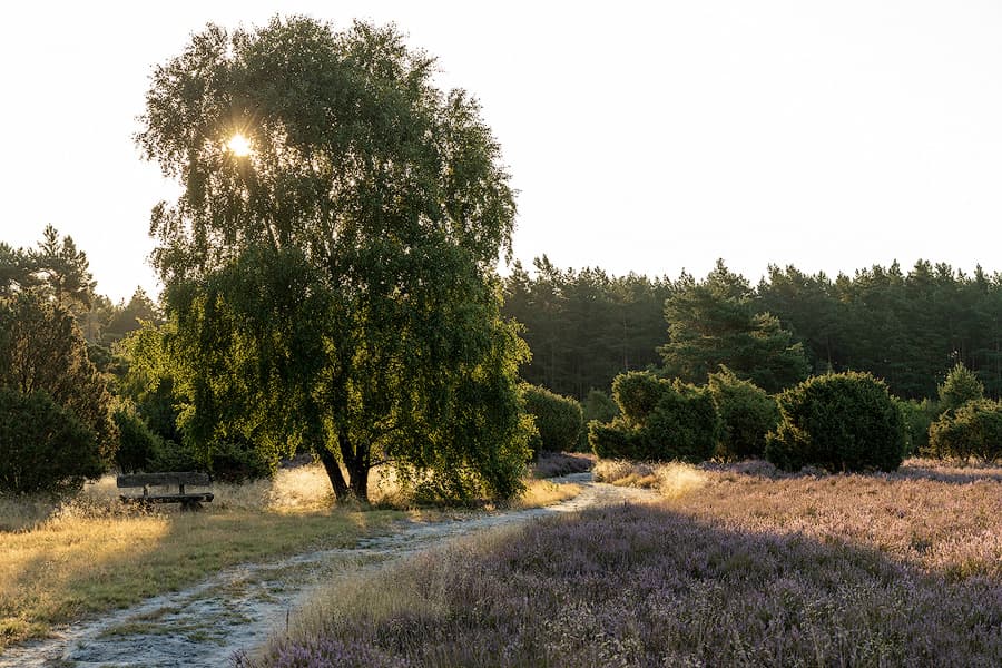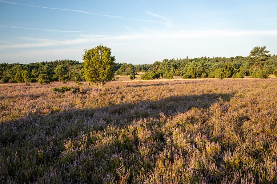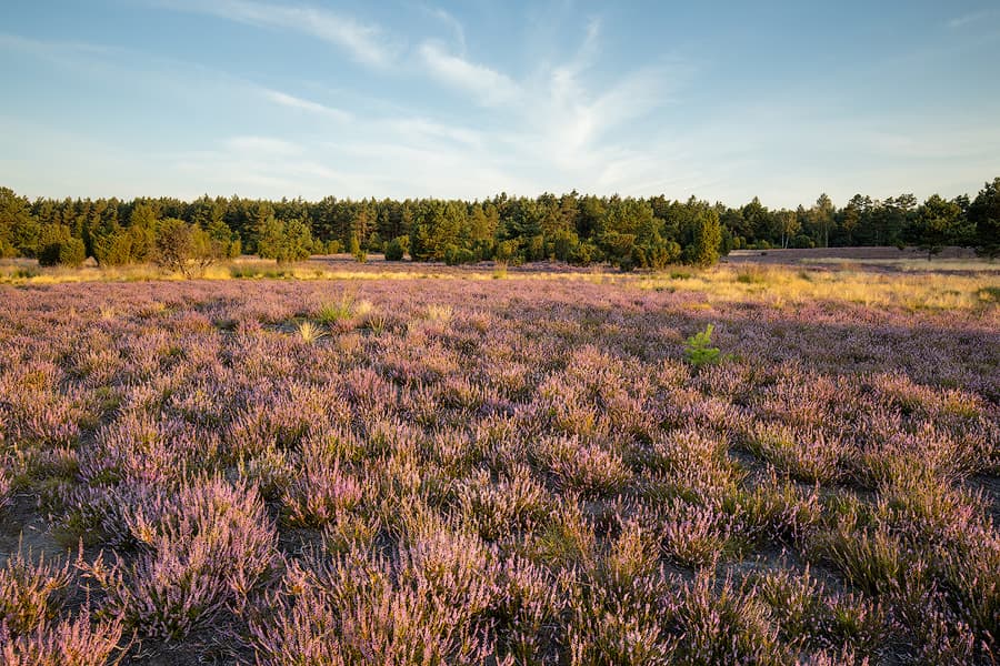 Die Rehrhofer Heide ist von Wäldern umgeben und hat eine leicht gewölbte Form. Gerade im Sommer kann man hier sehr lange die Sonne genießen und zum Sonnenuntergang noch eine schöne Wanderung durch das Heidekraut unternehmen.