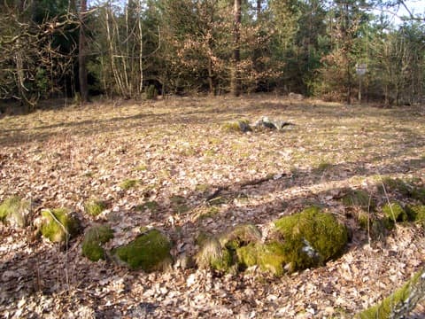Die "Steinkiste" ist ein 0,8 Meter hoher und 21 Meter im Durchmesser messender Hügel. In der Mitte des Hügels befindet sich eine quadratische Steinkammer, die einst von einem Deckstein bedeckt war.