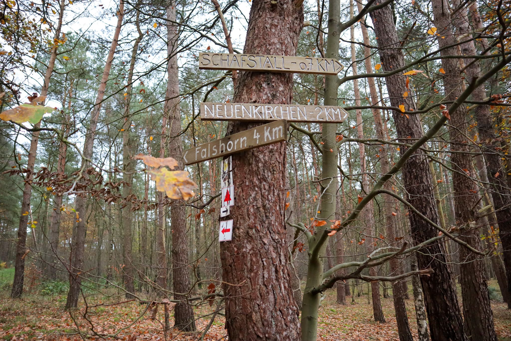 Da der Erlebnispfad unter anderem über den Schäferhof Neuenkirchen führt, kann die Tour auch dort gestartet werden. Parkplätze sind vorhanden. Die Adresse lautet Falshorner Straße 79 in 29643 Neuenkirchen.