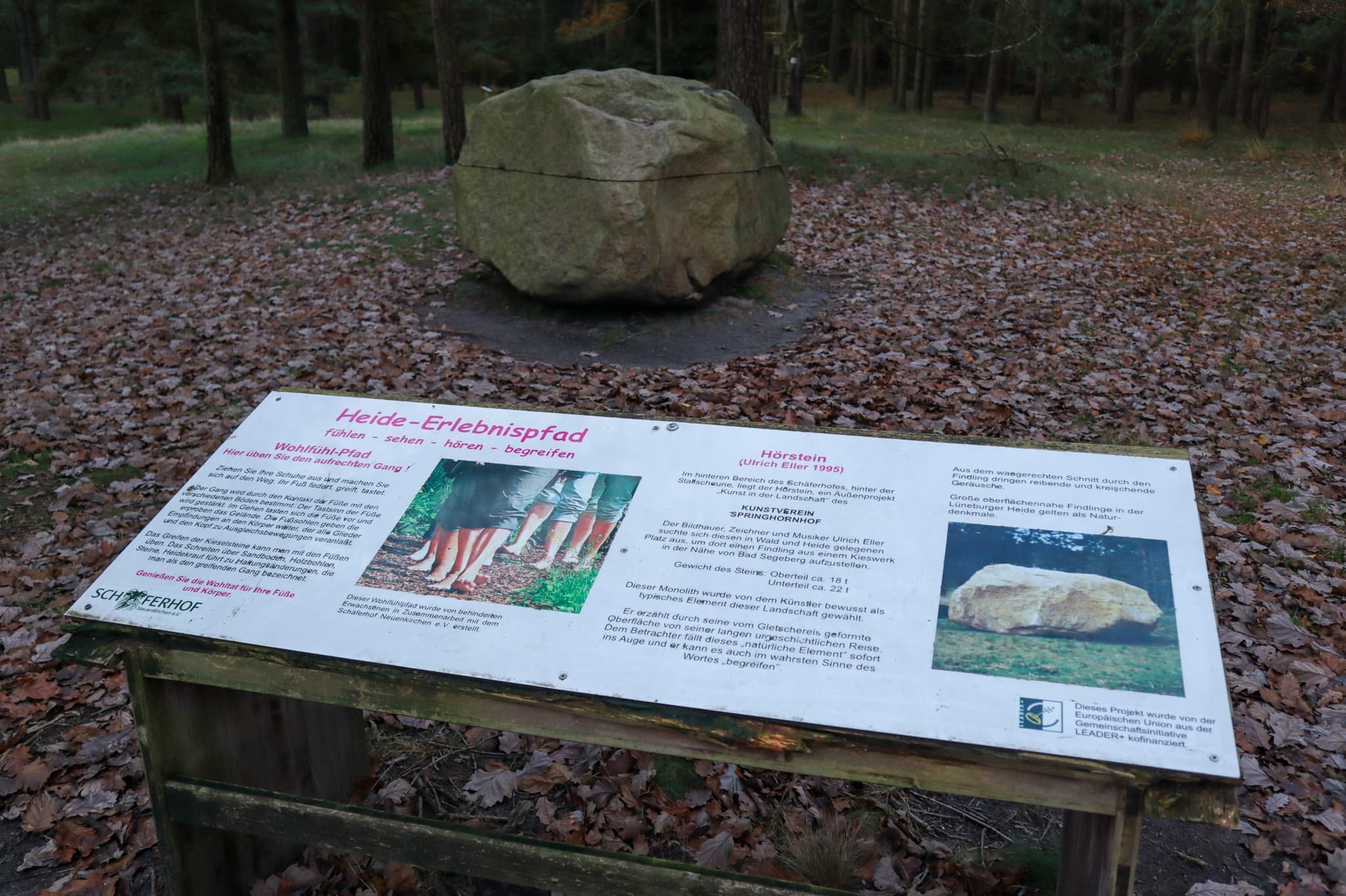 Entlang des Erlebnispfades kann an rund 30 Stationen gefühlt, geraten, gesucht und gelauscht werden. Er wurde mit Unterstützung der Kommunen, verschiedenen Sponsoren und mit Mitteln der Europäischen Union aus den Leader+ Regionen "Zentrale Lüneburger Heide" und "Hohe Heide" finanziert. Der Pfad wurde mit Erwachsenen mit Behinderungen, Schülern der umliegenden Schulen und den Mitarbeitern des Schäferhofes angelegt und gestaltet.