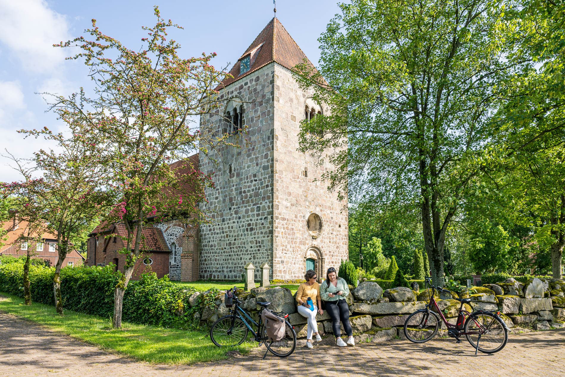 Mittelschwere Fahrradtour auf überwiegend befestigten Wegen, gute Grundkondition erforderlichVorbei an der Tietlinger Wacholderheide, wo der Heidedichter Hermann Löns seine letzte Ruhe fand, geht es über Honerdingen zur Meinerdinger Kirche. Für das Kleinod aus dem 13. Jahrhundert sollte eine Besichtigungspause eingeplant werden. Durch Wald und Flur führt die Route weiter nach Düshorn, einem beschaulichen Heidedorf. Hier kann im Dorfladen Proviant gekauft werden – regionale Anbieter bieten hier, neben üblichen Lebensmitteln, ihre Produkte an. Das Düshorner Strandbad verleitet darüber hinaus zur Abkühlung: Ein künstlicher Eisberg ist die Attraktion der gepflegten Anlage, die ehrenamtlich betrieben wird. Im weiteren Verlauf der Etappe Richtung Süden wird dann schnell Hodenhagen erreicht.