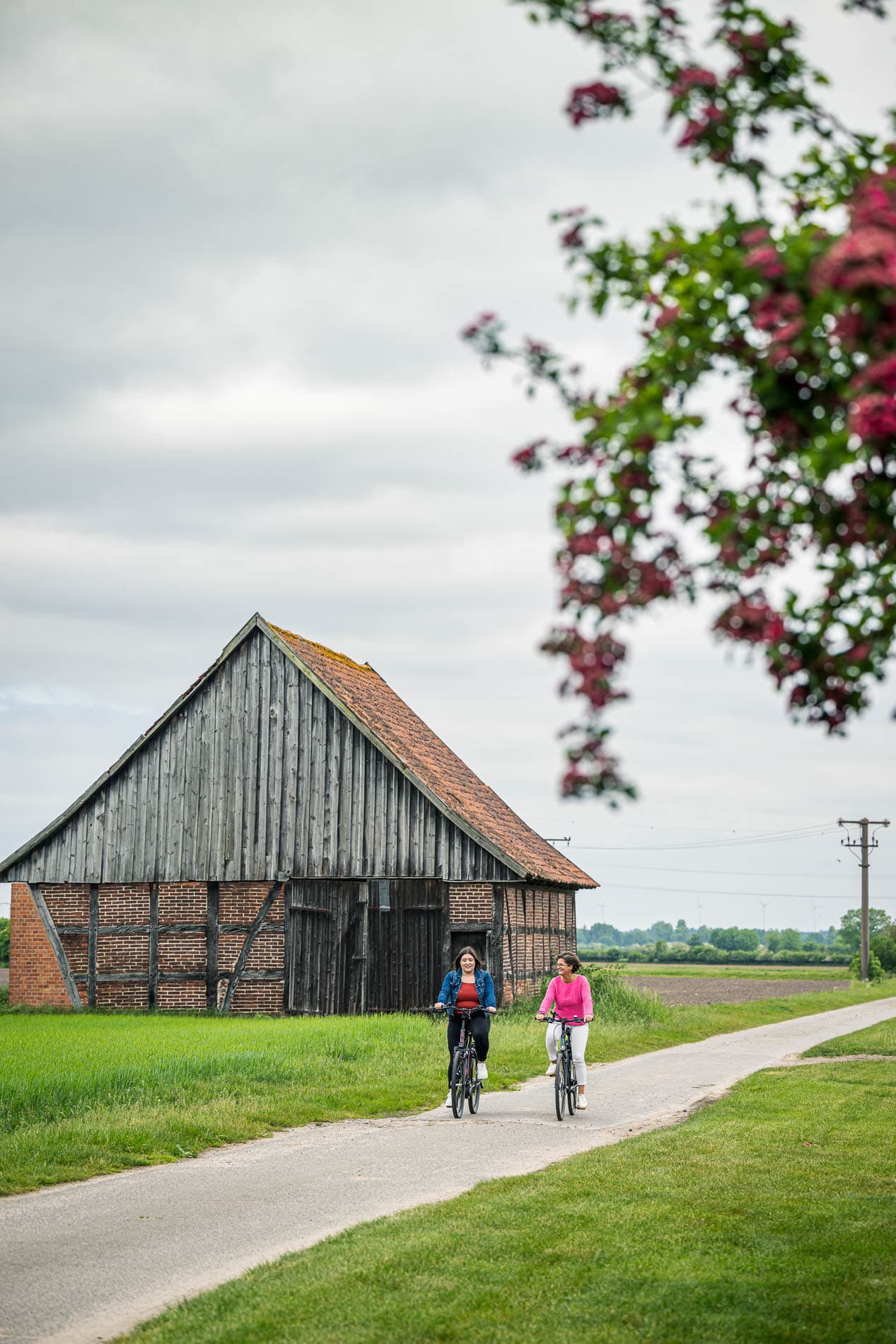 Vom Burghof Rethem zuerst entlang der B209 in Richtung Walsrode, dann – nach der Aller-Brücke – rechts ab auf eine wenig befahrene Straße Richtung Kirchwahlingen: Wiesen, der kleine Ort Altenwahlingen und südwärts die fruchtbare Allermarsch. Bei Böhme führt die Etappe erst ein kleines Stück auf die Hauptstraße und dann erneut in die Allermarsch Richtung Bierde. Weiter geht’s gen Norden, bis Sie die Böhme überqueren und Altenboitzen erreichen. Zurück in der VogelparkRegion, radeln Sie durch die malerischen Heidedörfer Altenboitzen, Hollige und Benzen nach Walsrode.