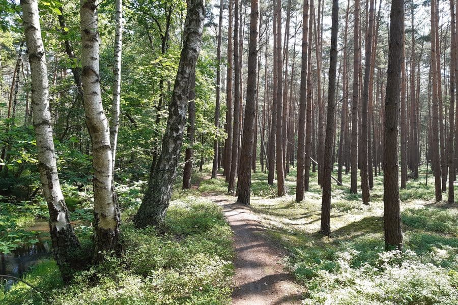 Die Wanderung beginnt auf einer kleinen Lichtung nordöstlich von Altencelle, wo eine Übersichtstafel den Startpunkt markiert. Von dort folgt der Weg zunächst dem Osterbruch-Kanal auf einem breiten Pfad, der sich bald zu einem schmalen Weg durch den Eichen- und Kiefernwald verengt. Eine Infotafel am Uferrastplatz informiert über die Geschichte des Kanals.Weiter geht es am Waldrand entlang nach Süden, wobei sich immer wieder der Blick zwischen Wald und Feldern abwechselt. Bald verläuft die Route parallel zu den Osterloher Alpen, deren Sandhügel einen Panoramablick auf die Allerniederung ermöglichen. Hier laden Wegweiser zu einem Abstecher zum NABU-Renaturierungsprojekt ein, das die Vielfalt der Flora und Fauna eindrucksvoll präsentiert.