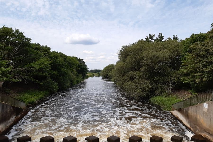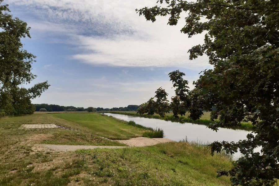 Anschließend führt der Weg nach Osterloh, einem Ort, der durch die Mischung aus traditionellen Heidehöfen und modernen Wohnhäusern geprägt ist. Nach dem Verlassen des Ortes erreicht man das Osterloher Wehr und wandert entlang einer renaturierten Flussschleife der Aller mit weitem Blick in die Aue.