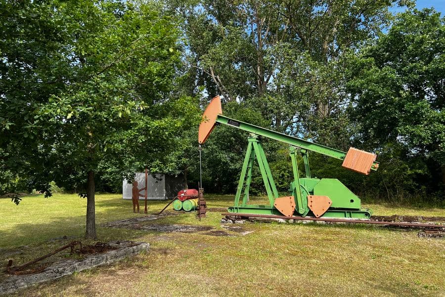 Als besonders anschauliche Station folgt die Pferdekopfpumpe in Hademstorf. Mit dieser wurde früher Öl gepumpt. Heute ist der Nachbau als Demonstrationsobjekt an dieser Stelle zu begutachten.