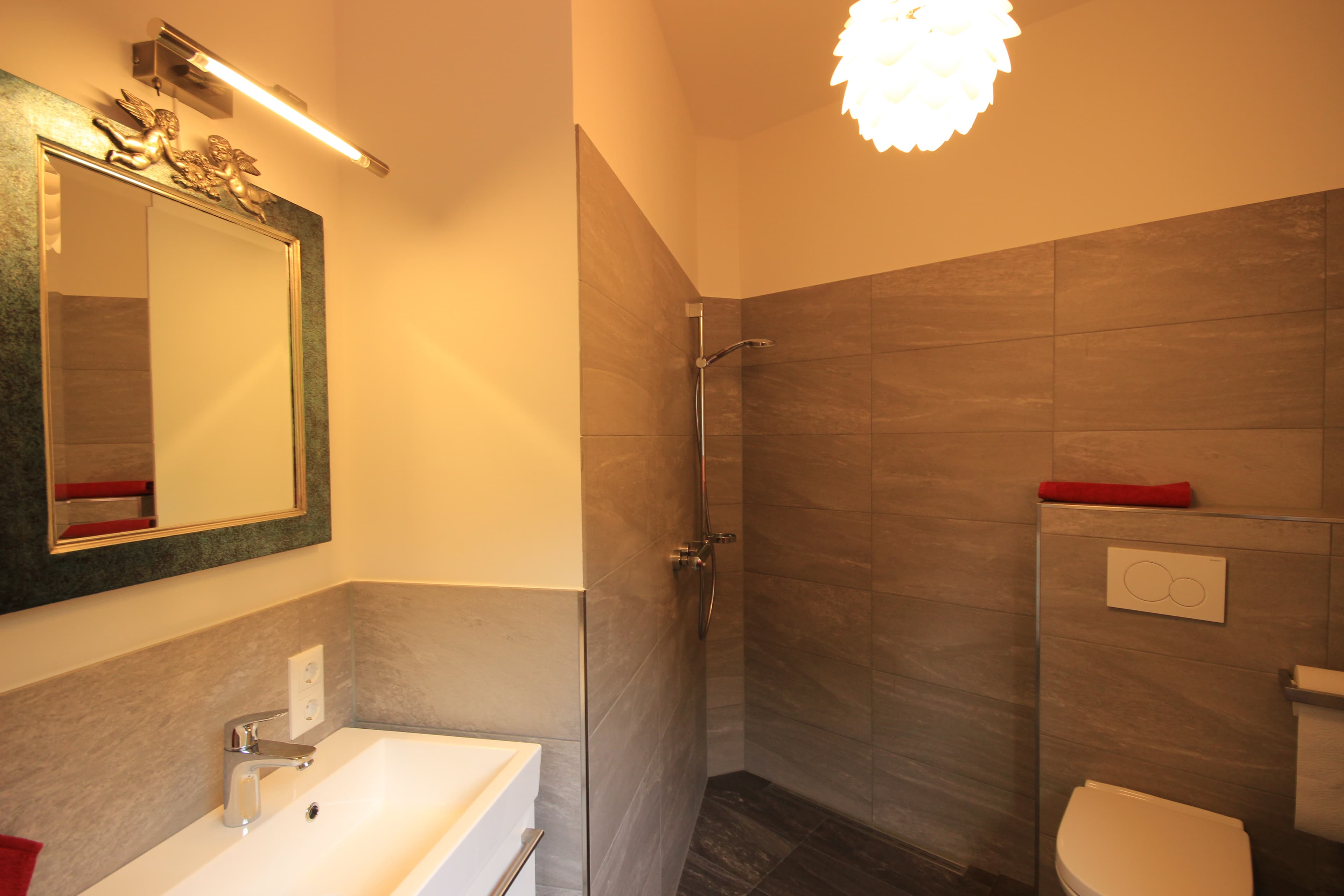 ... indem wir die zwei Schlafzimmer unseres Ferienhauses so gestaltet haben, dass jedes Schlafzimmer ein eigenes Bad mit einem Zugang vom Zimmer aus hat. So bleibt die Privatsphäre bewahrt.