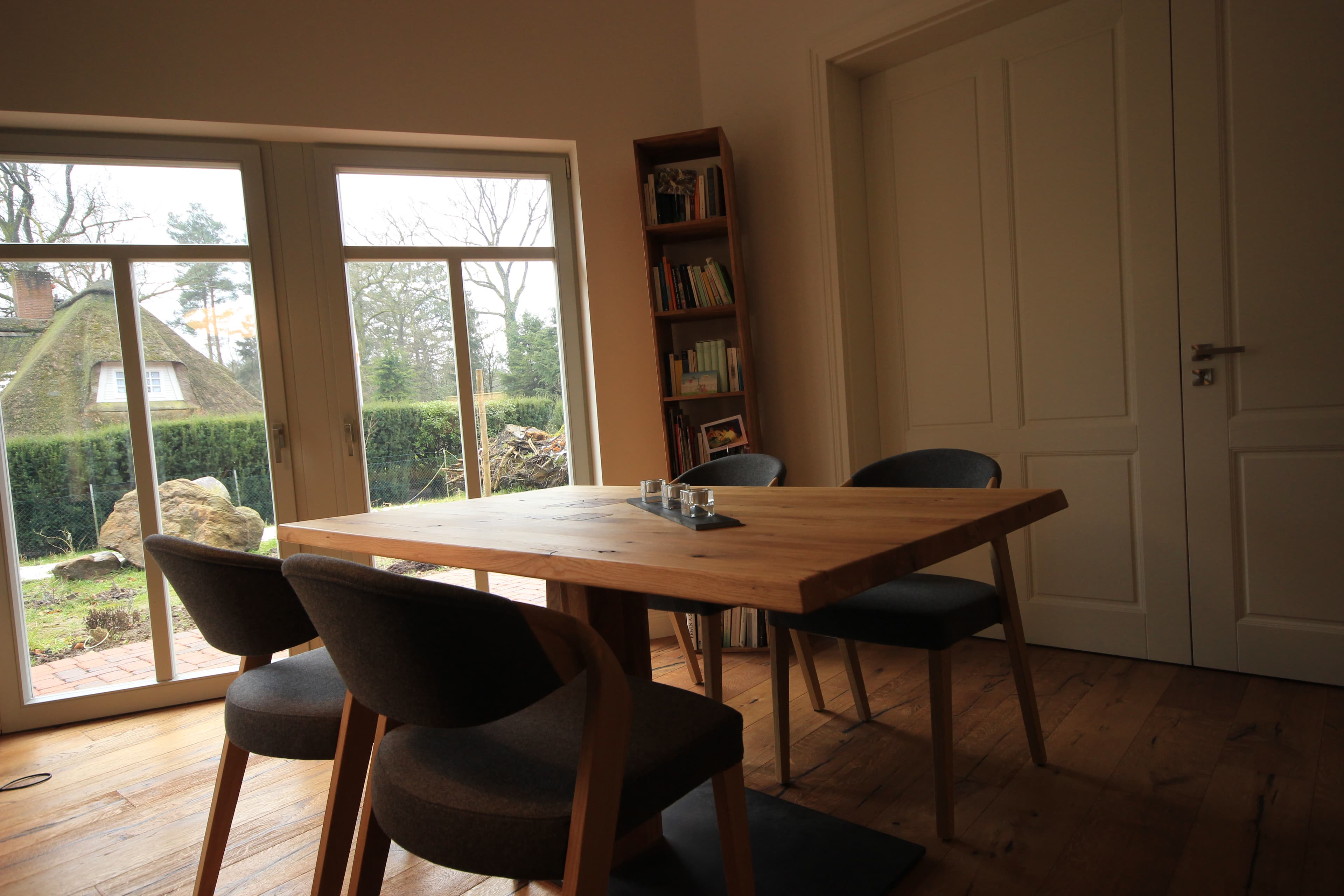 ... indem wir einen Seminarraum mit modernen, schönen Eichenmöbeln so eingerichtet haben, das Denken und Arbeiten in einem schönen Ambiente möglich sind.
