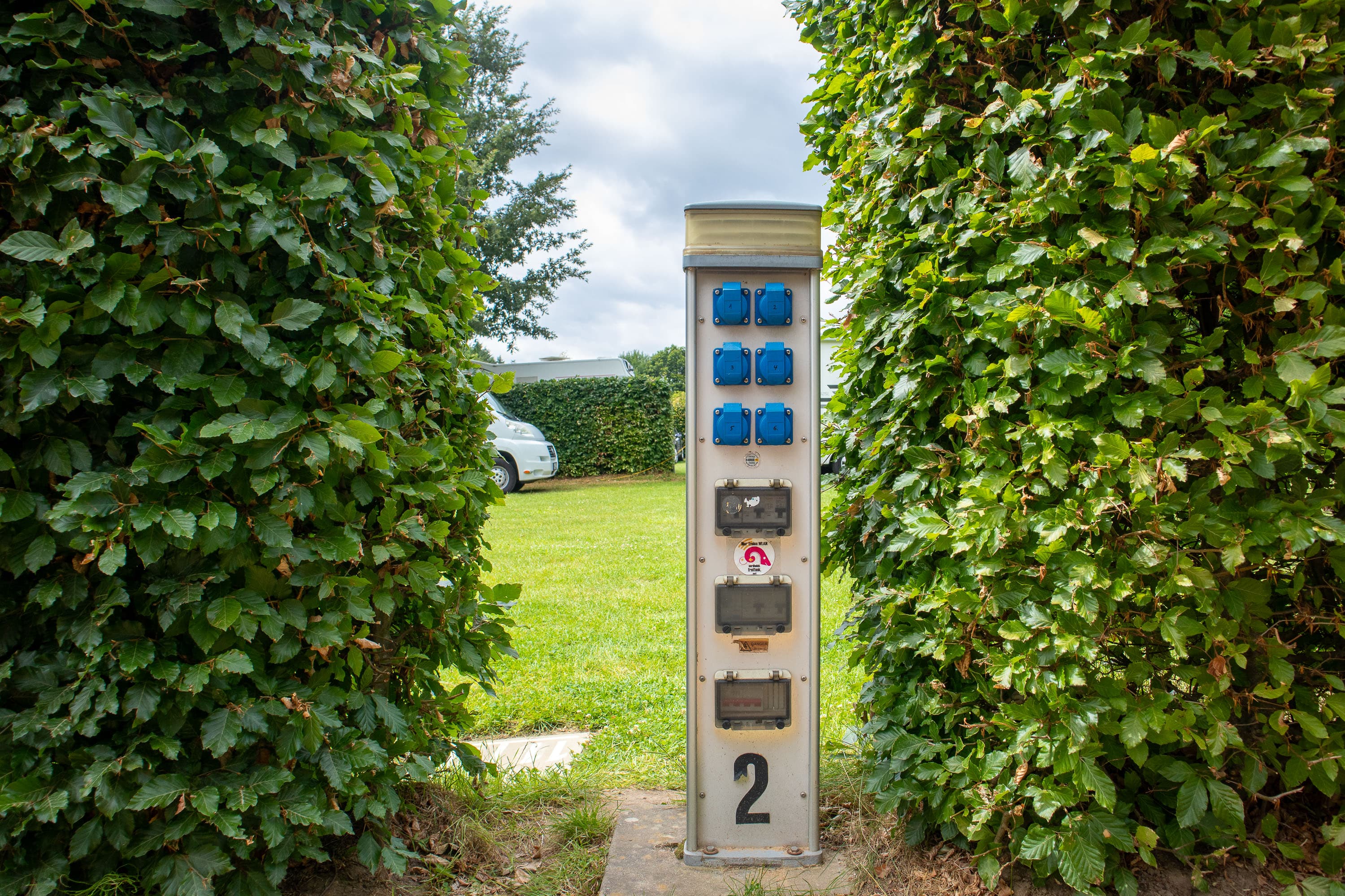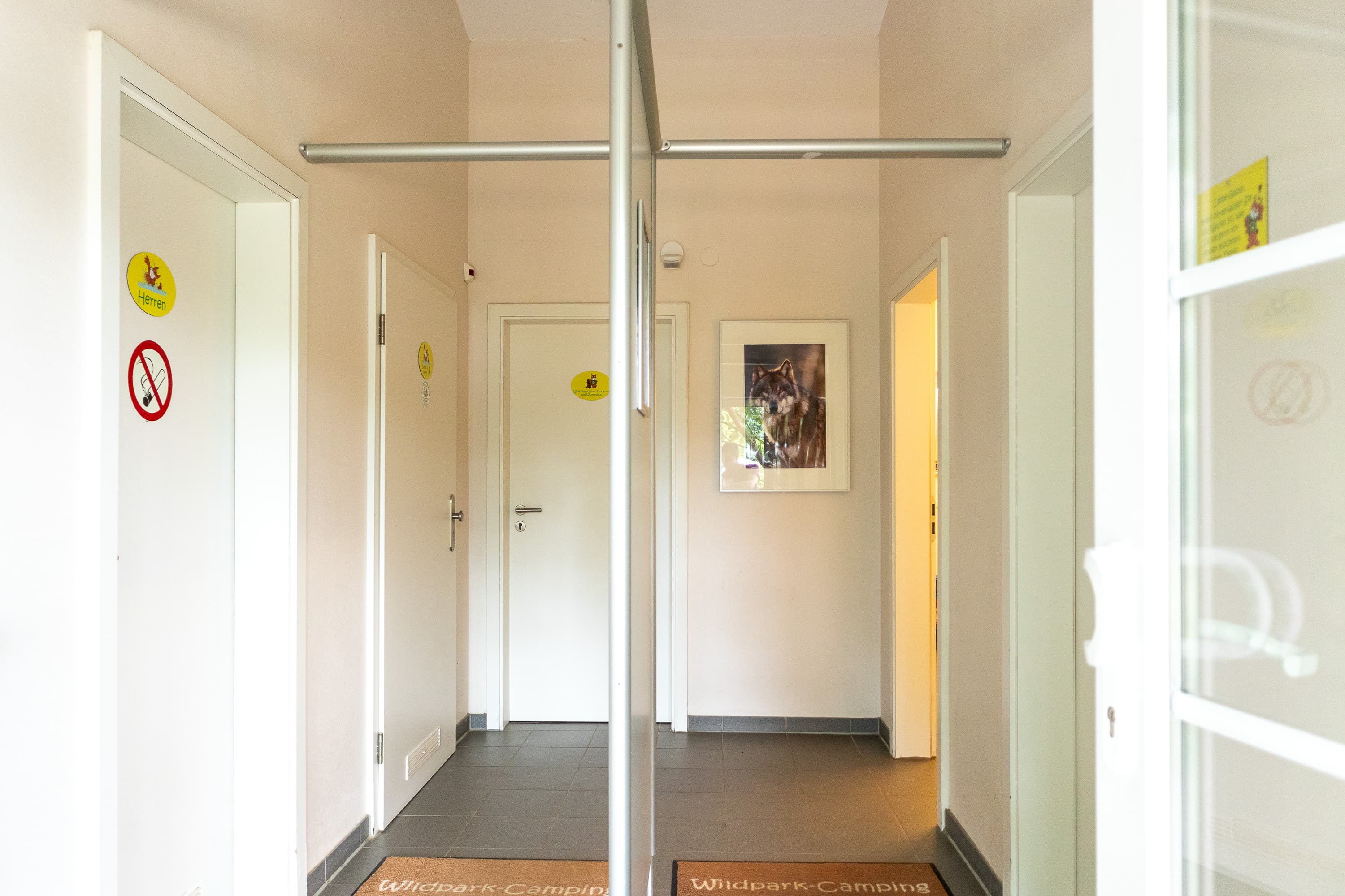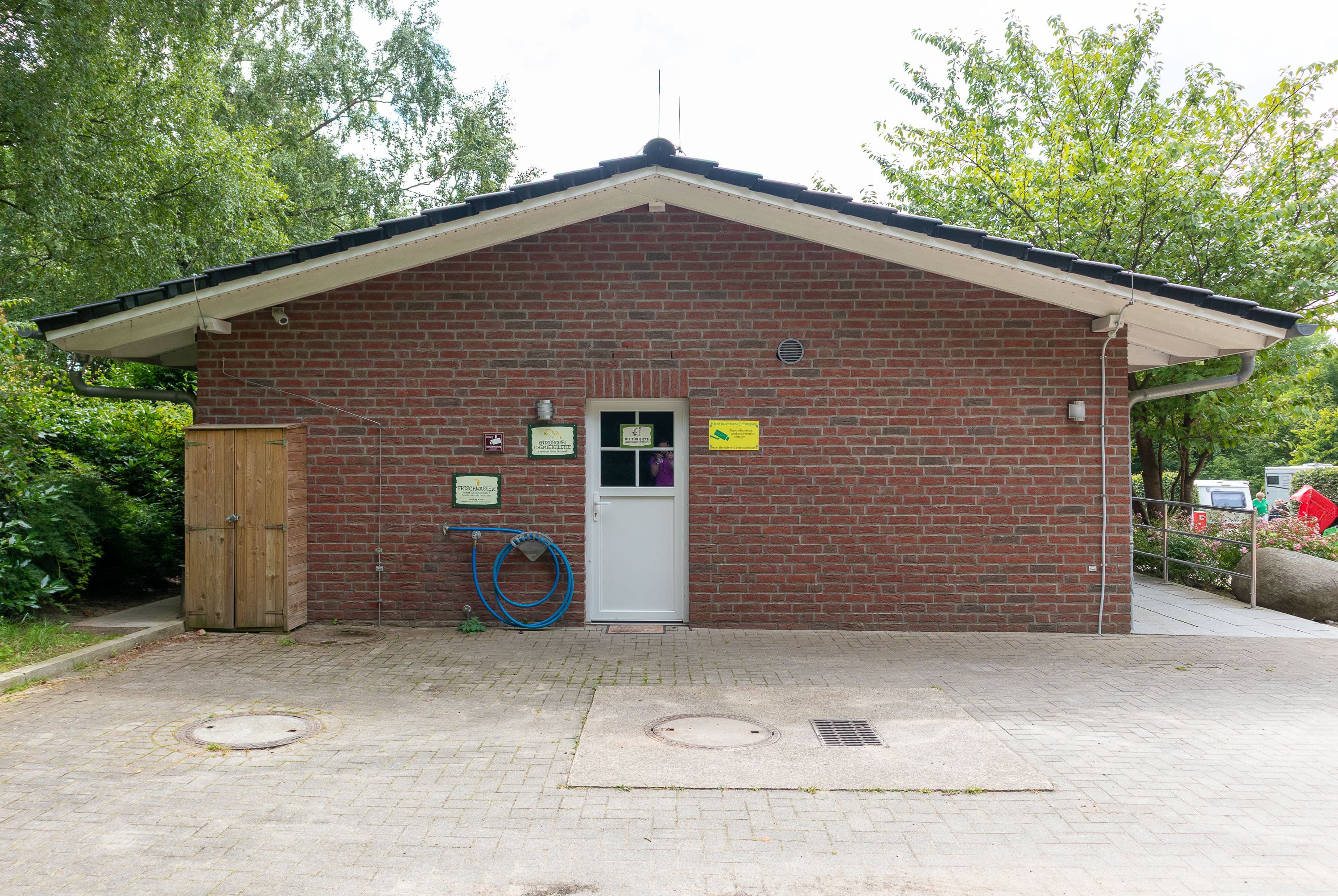 Ein Waschhaus mit sanitären Anlagen, auch rollstuhlgeeignet, einer Küche, einer Waschmaschine und einem Trockner sowie einem Aufenthaltstraum. Ver- und Entsorgestationen sowie Strom inklusive.