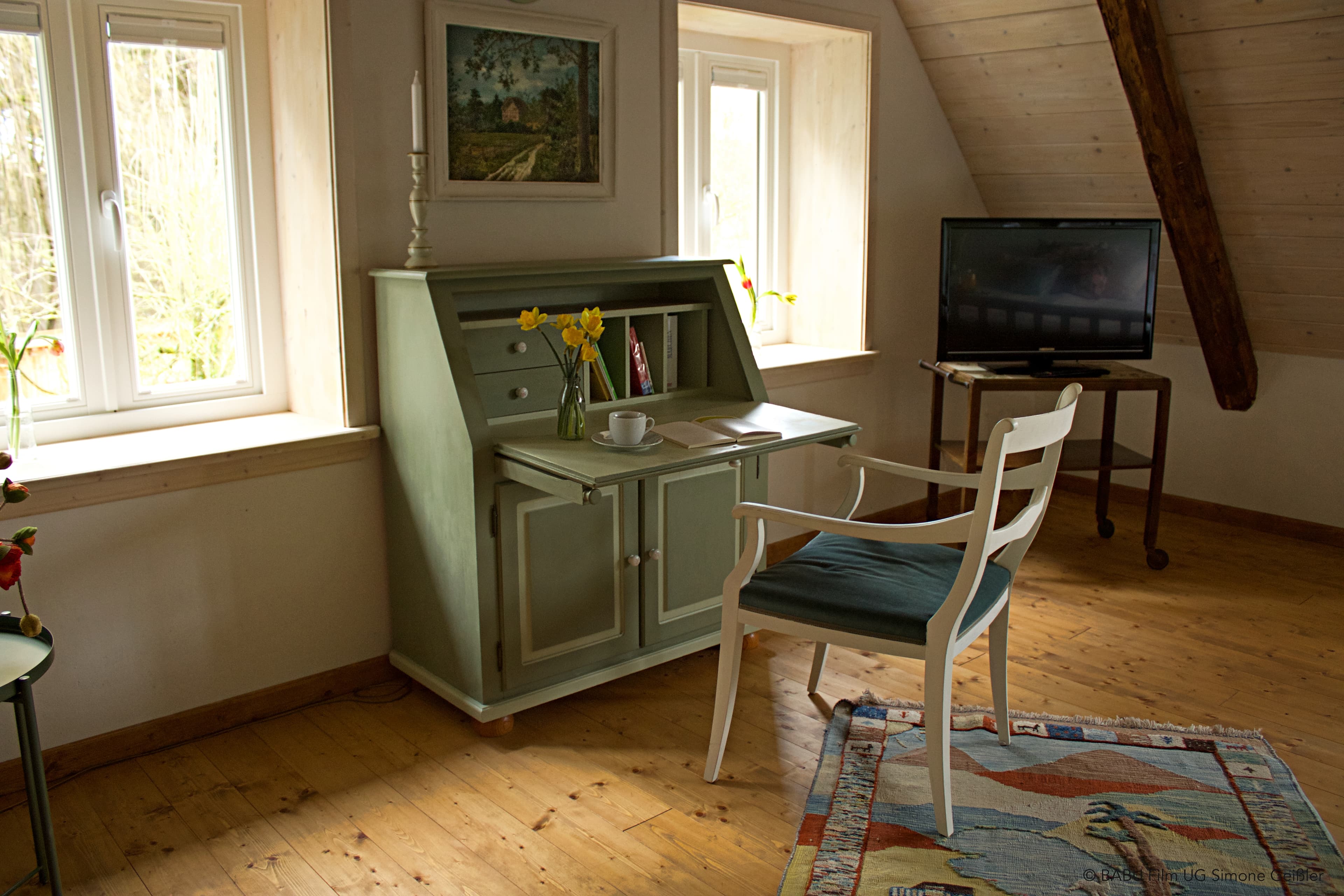 Gerne können Sie die Freizeiteinrichtungen (großer Schwimmteich und Kinderspielplatz) des benachbarten Pensionsbetriebs mitbenutzen. Für Ihre Fahrräder steht ein großzügiger, beleuchteter Gästeschuppen bereit. In unmittelbarer Nachbarschaft befindet sich der "Oertzespeicher", ein weiteres, neu renoviertes Ferienhaus für zwei Personen.