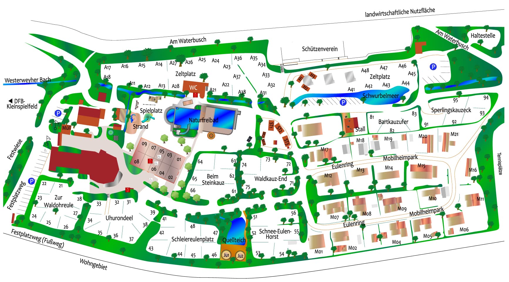 Das Uhlenköper-Camp liegt am Rande der Heidestadt Uelzen im kleinen Ortsteil Westerweyhe, der von Uelzen durch den Stadtforst getrennt ist.