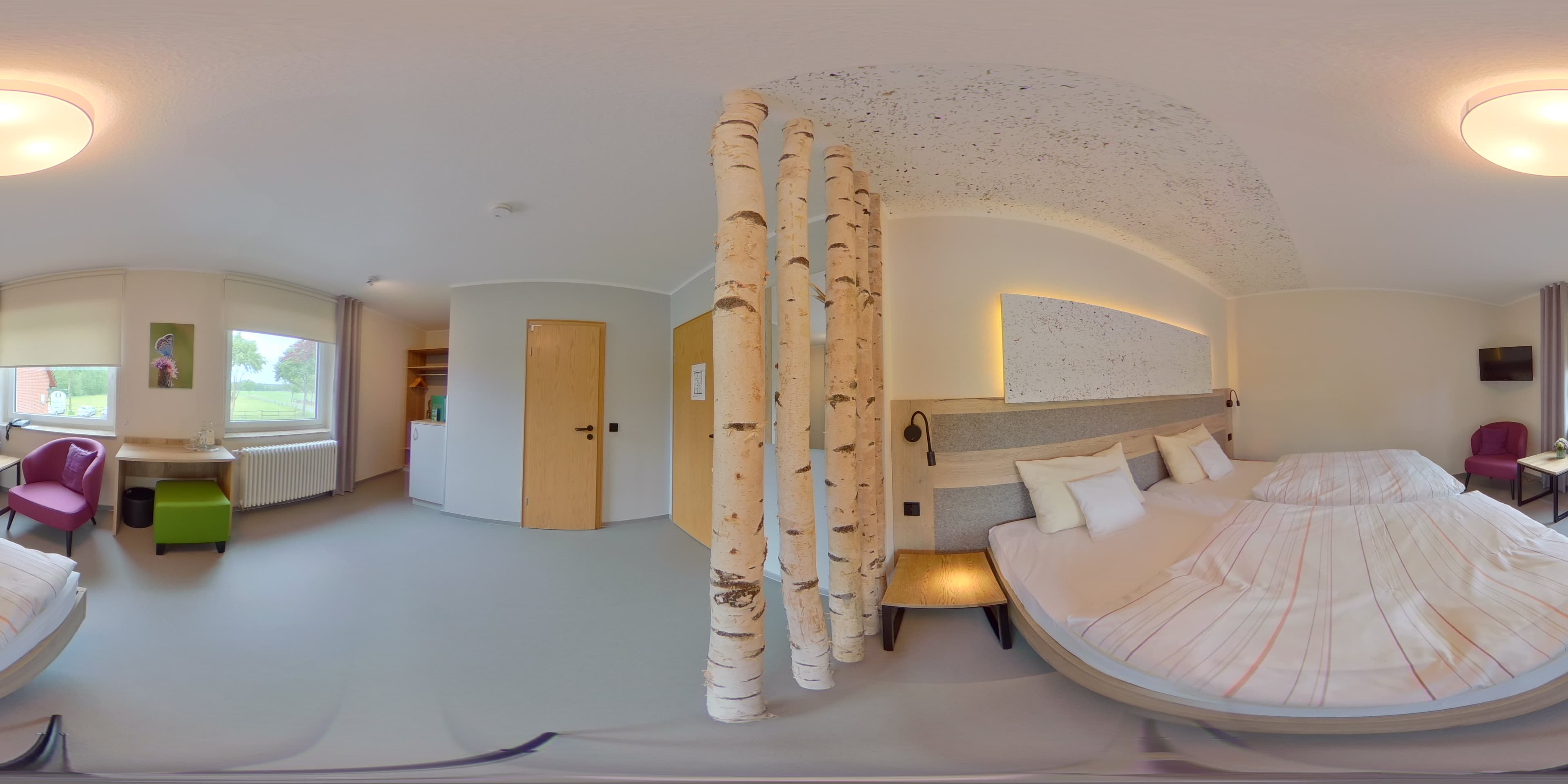 Alle unsere ruhigen, großzügigen Komfortzimmer bieten einen Blick in die Natur und sind mit Dusche/WC, Farb-TV, Telefon, Fön und W-LAN (über Hotsplots) ausgestattet. Gemütliche Sessel oder eine Couch laden zum Verweilen ein. Die insgesamt 25 Zimmer verteilen sich auf das Haupthaus, ein Gästehaus und den Hof Wiesengrund. Bitte beachten Sie, dass unser Haus keine Fahrstühle besitzt.