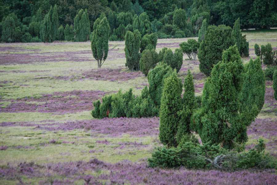 Mein Tipp: einfach einmal an den großen Heideflächen innehalten und lauschen! Oft verschmelzen die weiter vom Weg entfernten Tiere im welligen Gelände mit Heidekraut und Gehölzen zu einer Einheit und sind optisch kaum wahrnehmbar. Ihr leises Blöcken und die Rufe des Schäfers verraten jedoch den Standort.