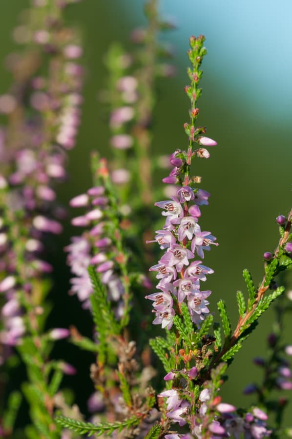Der genaue Blick auf die Heidekrautgewächse wird zum Beispiel offenbaren, dass es bei ihnen gewisse Unterschiede gibt. Die Erica tetralix, die Glockenheide, blüht schon seit Anfang Juli, allerdings nur vereinzelt und nur dort wo es recht feucht ist. Die Besenheide, die Calluna vulgaris allerdings verwandelt im August und September die weiten Sandheideflächen in ein Blütenmeer und lockt die Menschen hinaus in die Natur. Dass man trotzdem von der „Erica-Blüte“ spricht, wenn man doch die „Calluna“ meint, mag entweder daran liegen, dass der Dichter Löns mit „Erica“ mehr anfangen konnte als mit „Calluna“ oder daran, dass beide zur Pflanzenfamilie der „Ericaceen“, also der Heidekrautgewächse gehören.