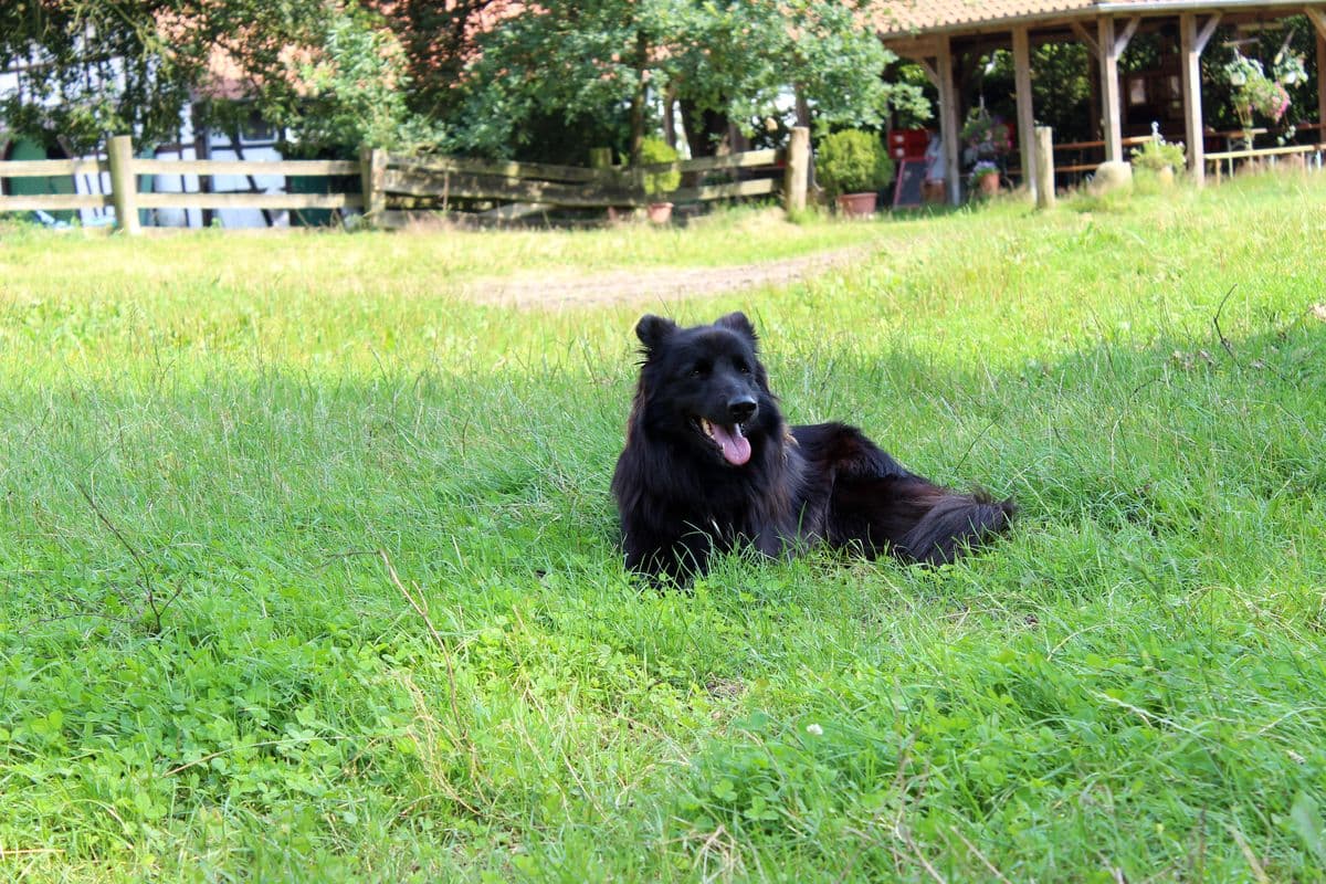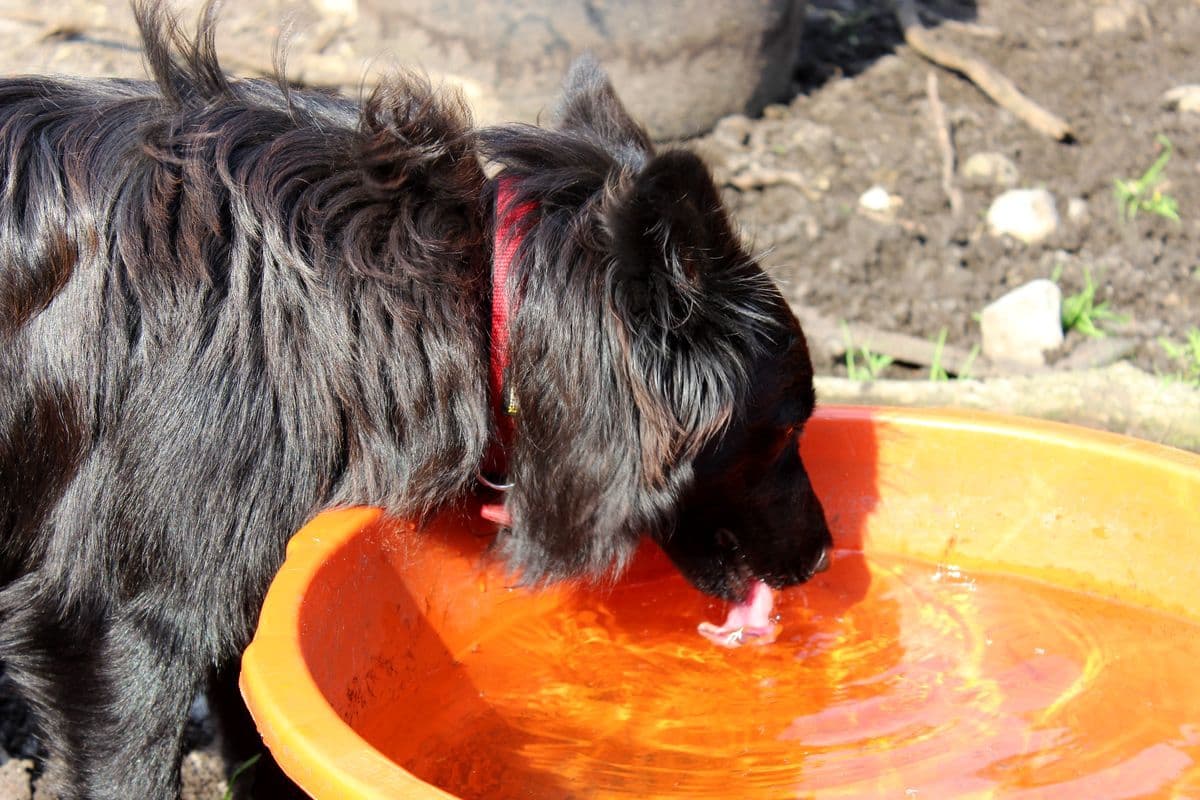 Nach einem langen Arbeitstag freut sich auch Paula auf eine Erfrischung. Die fast einjährige Hüte-Hündin hat sich hervorragend in der Familie Kuhlmann eingelebt und macht ihren Job ausgezeichnet. Als Hundebesitzerin fasziniert es mich immer wieder, mit welch Freude und Ausdauer die Hüte-Hunde ihre Arbeit machen und wie früh junge Hunde wie Paula ihre Aufgaben erlernen und umsetzen können. Alle drei Hunde auf dem Hof Niederohe freuen sich über ihren wohlverdienten Feierabend und strahlen eine beeindruckende Gelassenheit aus. Der Besuch auf dem weitläufigen Heidschnuckenhof ist schon etwas ganz Besonderes.