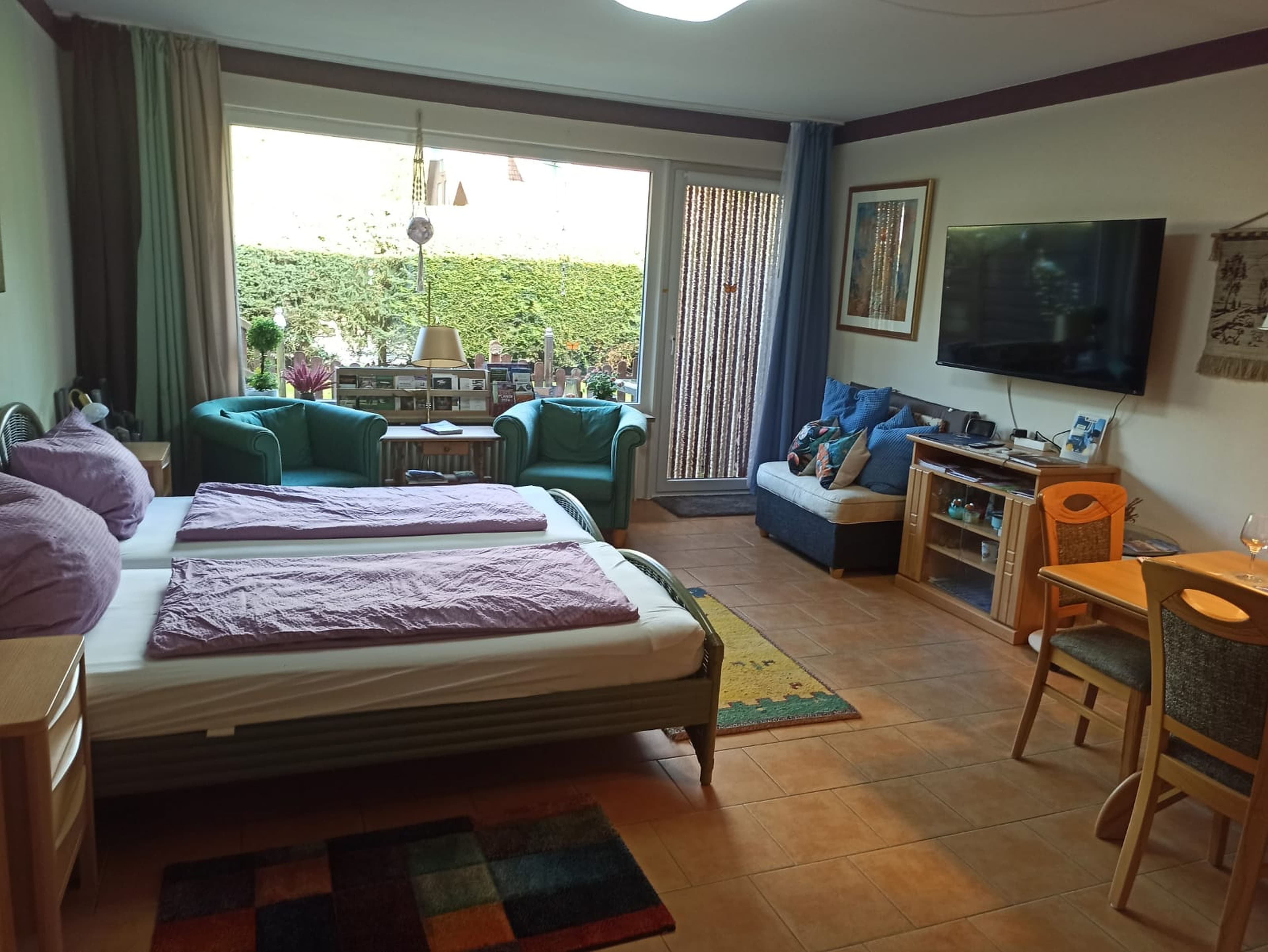 UndelohEin-Zimmer-Erdgeschosswohnung für 2 Personen in einem Mehrfamilienhaus. Nichtraucherwohnung! Komfortabel und gemütlich eingerichtete Wohnung, nur wenige Gehminuten vom Naturschutzgebiet entfernt. Es gibt eine voll eingerichtete Küche mit einer verschließbaren Durchreiche zum mit Bedacht eingericht…