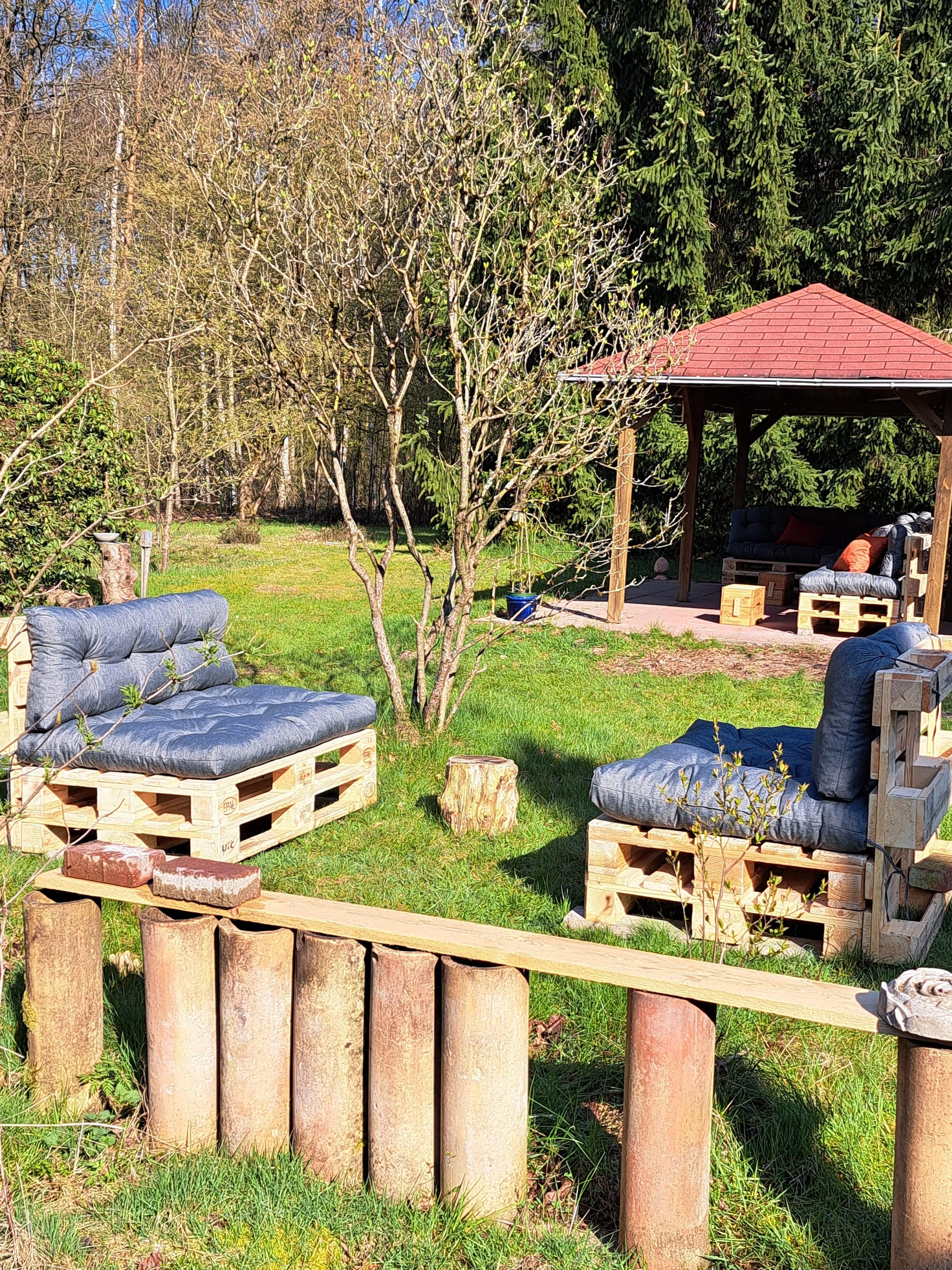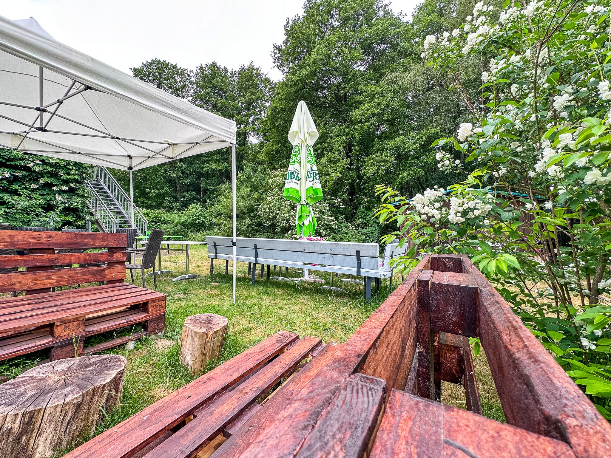 Für den reibungslosen und einfachen Ablauf bauen wir gerade unseren Tresen im Garten für den Selfservice