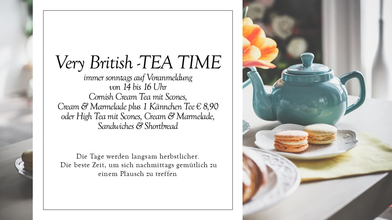 Winterzeit ist Tee Zeit und bei uns dann ganz besonders Zeit für eine wunderbare englische Tea Time. Und wer es üppiger mag zum High Tea mit Sandwich, Scones und Co.