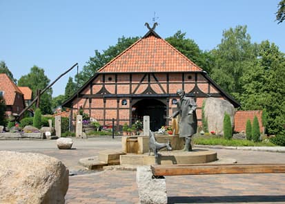 Bad Fallingbostel: Brunnen "Grefel Dorjen" auf dem Marktplatz Dorfmark
