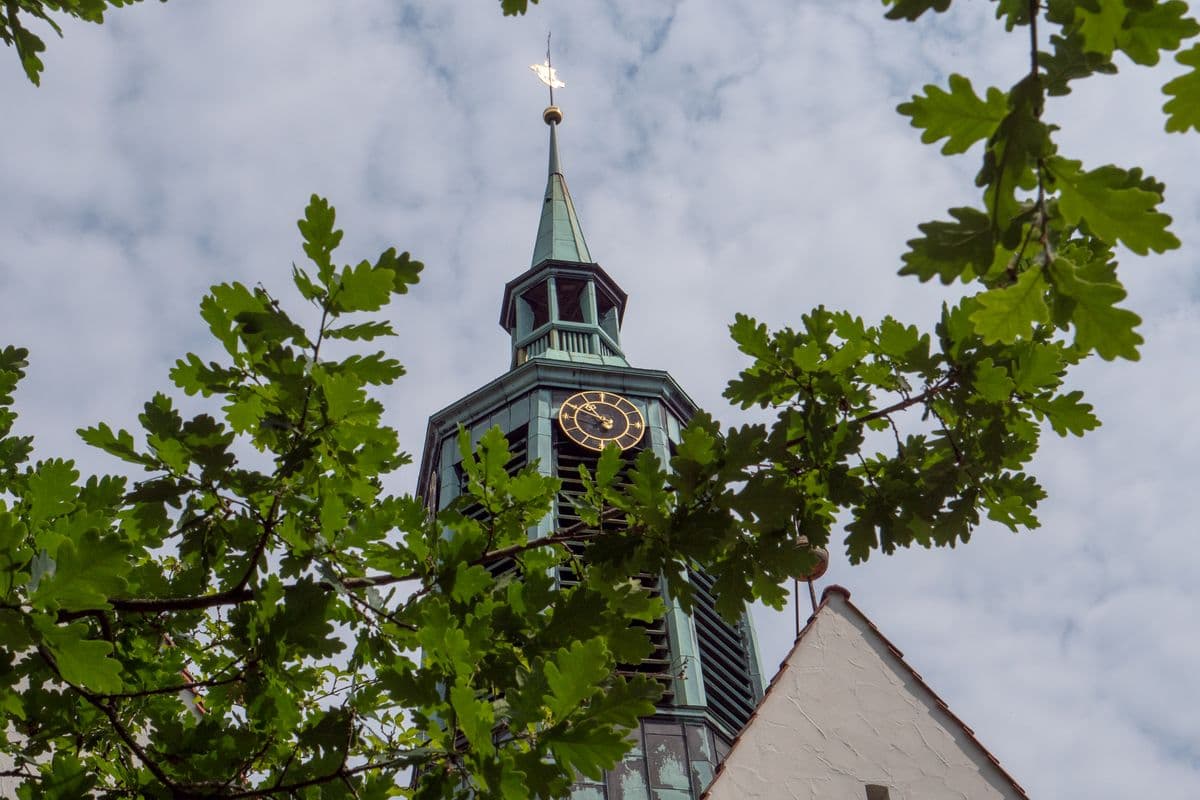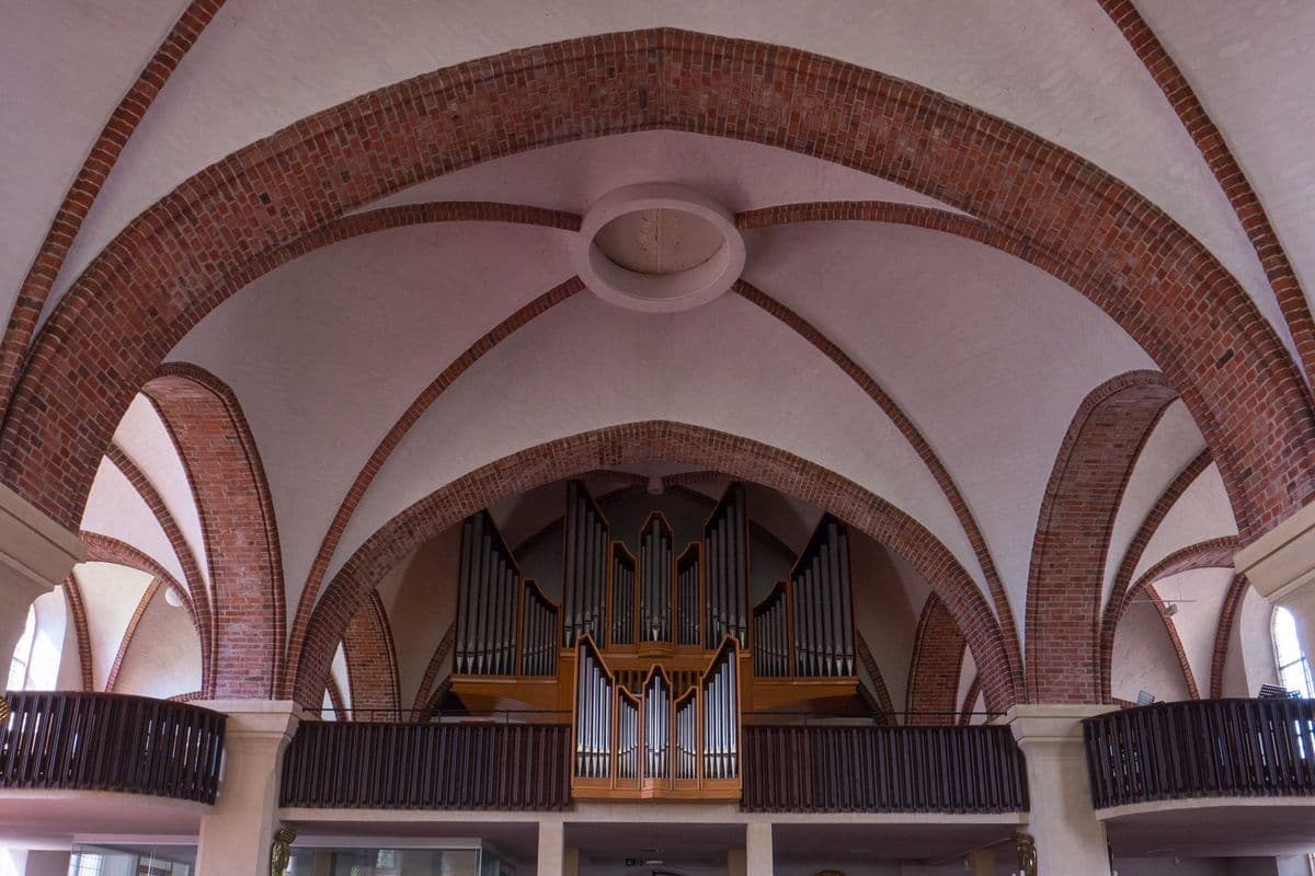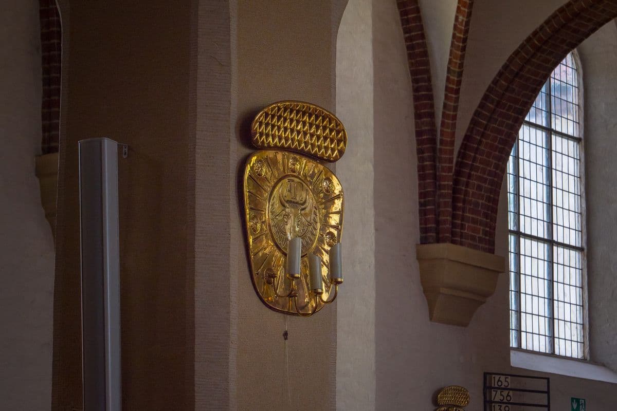 Beim Umbau fand man ein Kruzifix aus der Missionszeit im 10. Jahrhundert, das Sie links in einer Vitrine besichtigen können. Die jeweils sechsfach untergliederten Seitenschiffe und der als Dachreiter ausgebildete Kirchturm geben der Kirche ein unverwechselbares Erscheinungsbild.