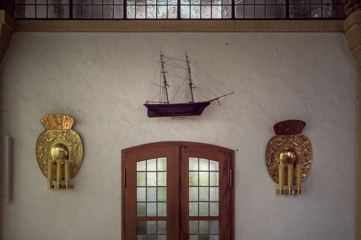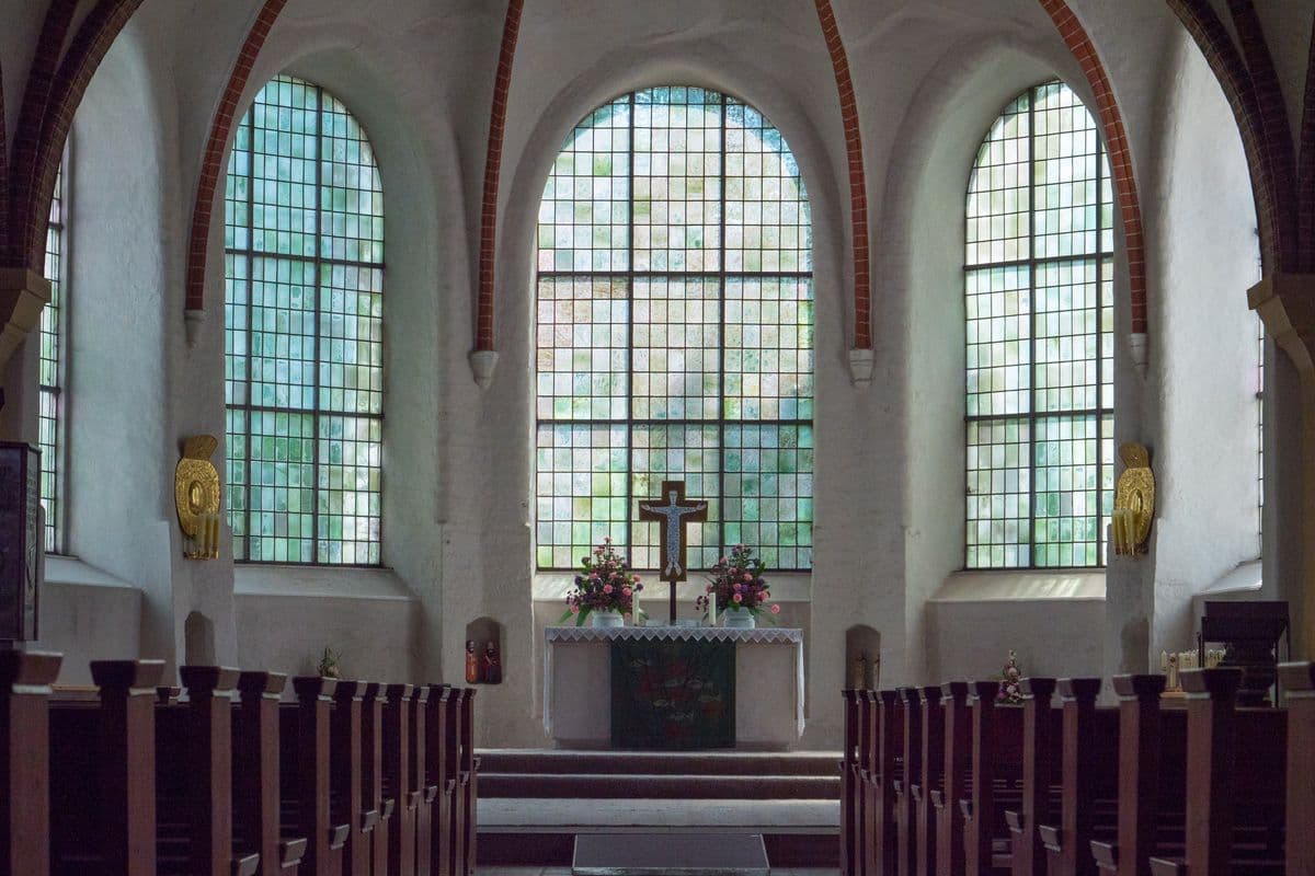 Älteste Inventarstücke sind das hölzerne Taufbecken und ein ebenfalls aus Holz gefertigter farbiger Kronleuchter, beide aus dem 18. Jahrhundert. Die übrige Ausstattung, Altar, Kanzel, Orgel und die ringsum im Kirchenschiff angebrachten 26 Messingleuchter, vermittelt einen typischen Eindruck von der Kirchenkunst der 1950er Jahre. Rechts finden Sie oben an der Wand des Altarraums ein Modell des Missionsschiffes Candace.