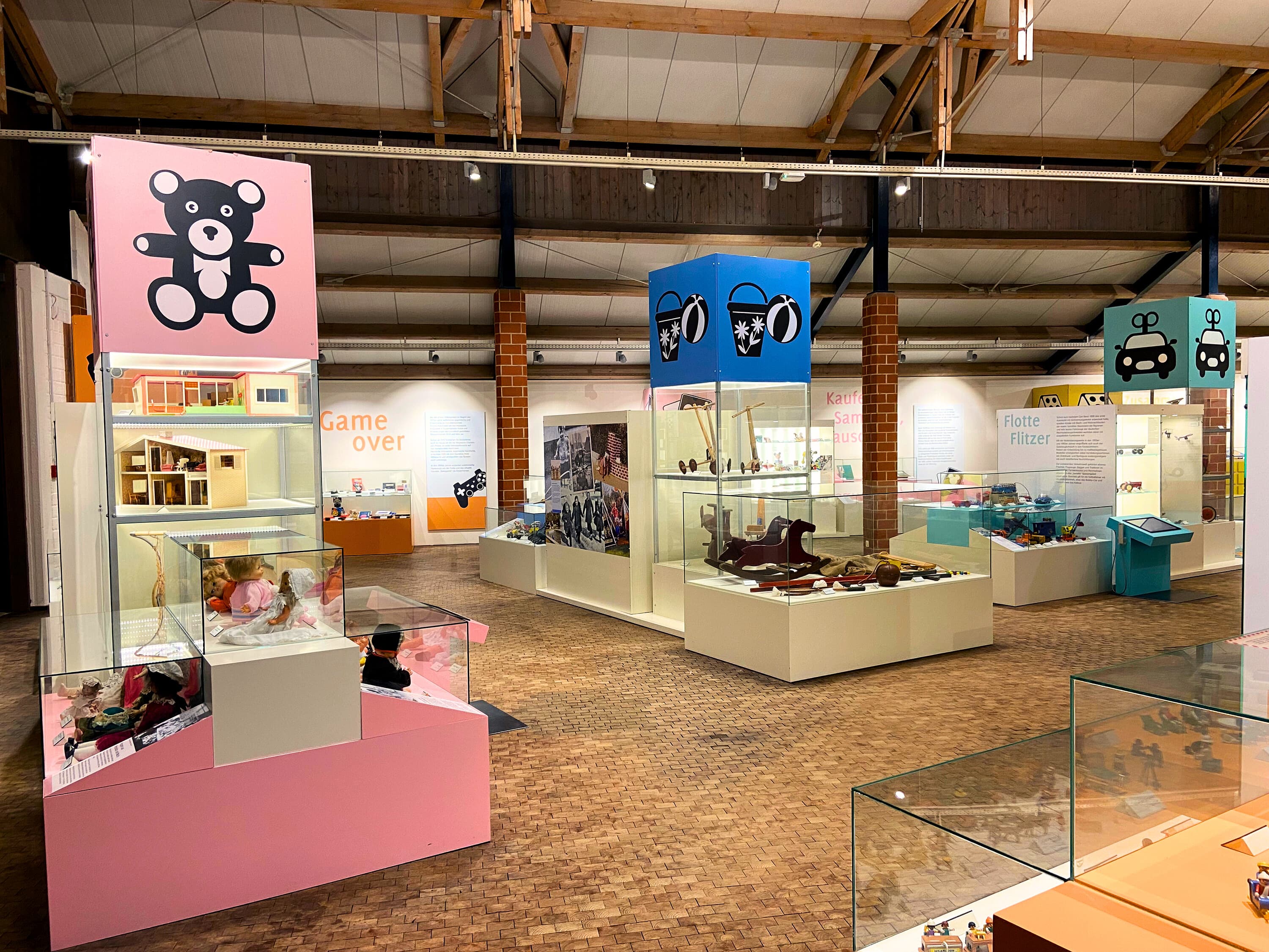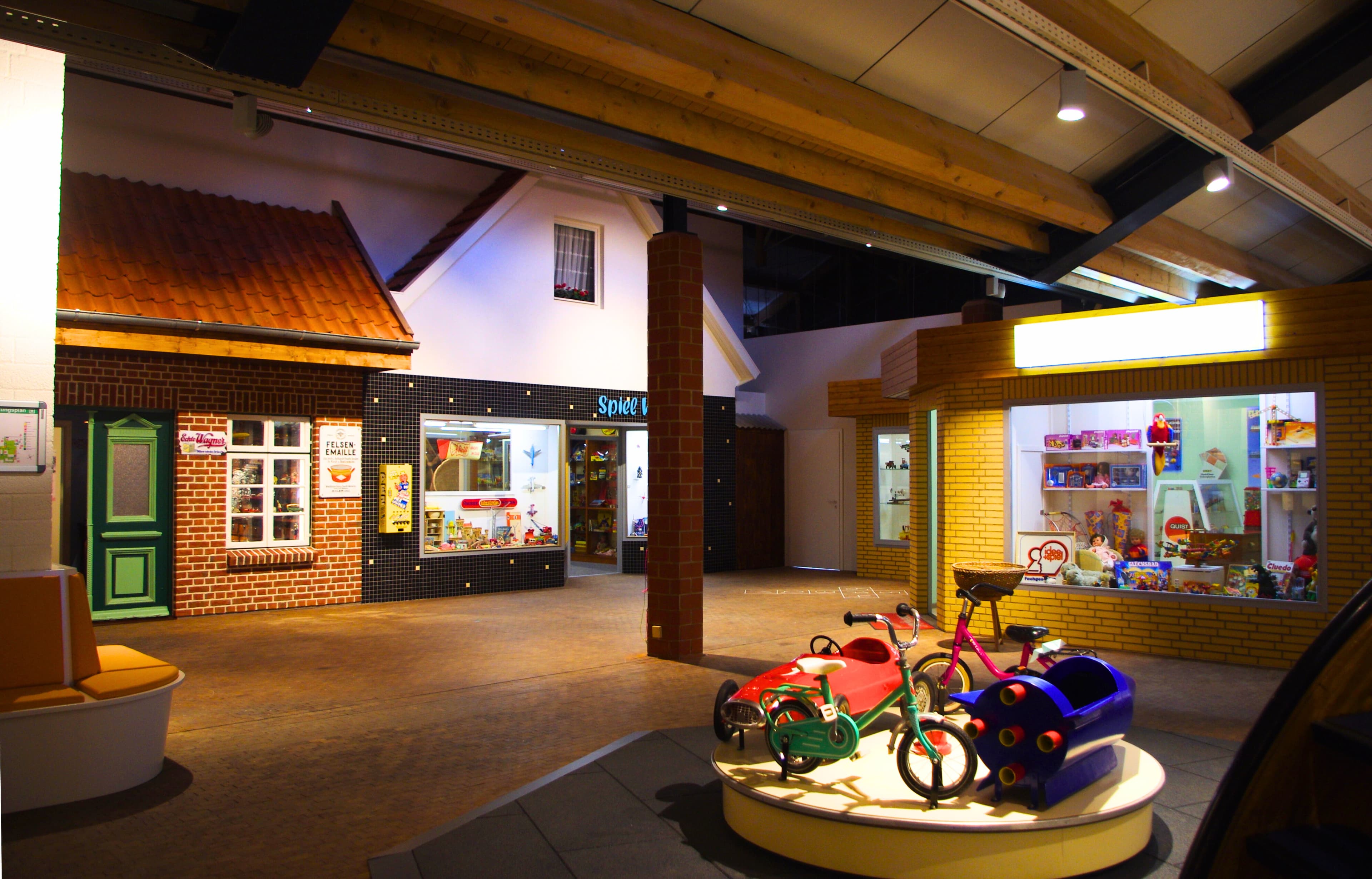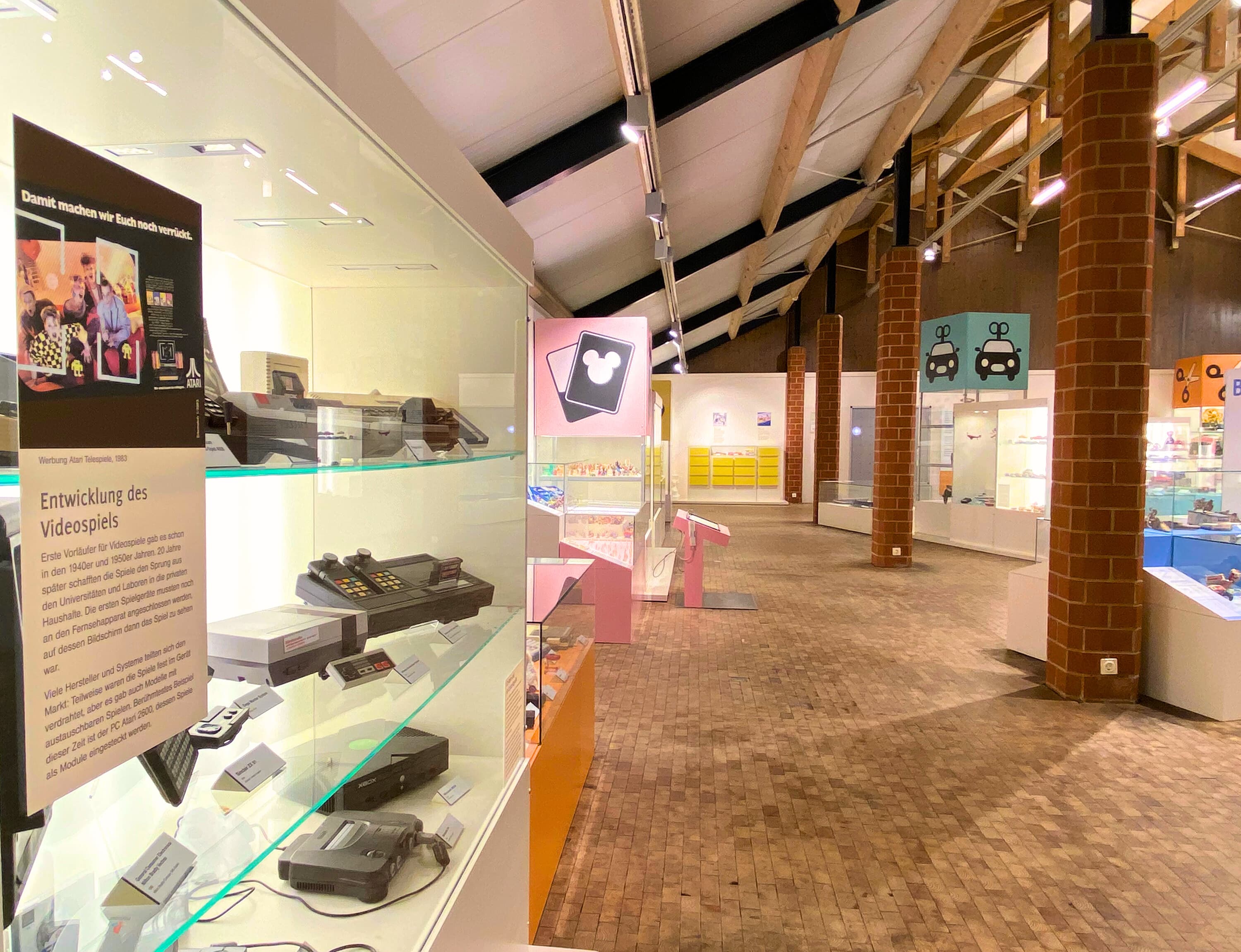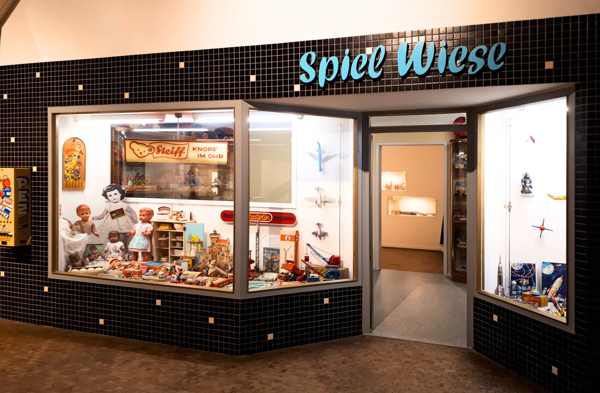 Aufwändig inszenierte und begehbare Spielzeugläden von 1900, 1950 und 1980 laden die großen und kleinen Besucher zum Staunen ein. Mit ihrer originalgetreuen Einrichtung verdeutlichen sie den rasanten Wandel in der Spielzeugkultur im Laufe des letzten Jahrhunderts: Statt Soldaten- oder Kriegsspielen gelangen nach 1945 Themen wie Mobilität, Freizeit oder Raumfahrt in die Kinderzimmer. Auch neue Materialien setzten sich durch, so löste etwa Kunststoff in den 1950er Jahren Holz und Metall ab. Gleichzeitig vermitteln die liebevoll gestalteten Läden auch die zeitlose Faszination von Spielzeugläden für Kinder und Erwachsene.