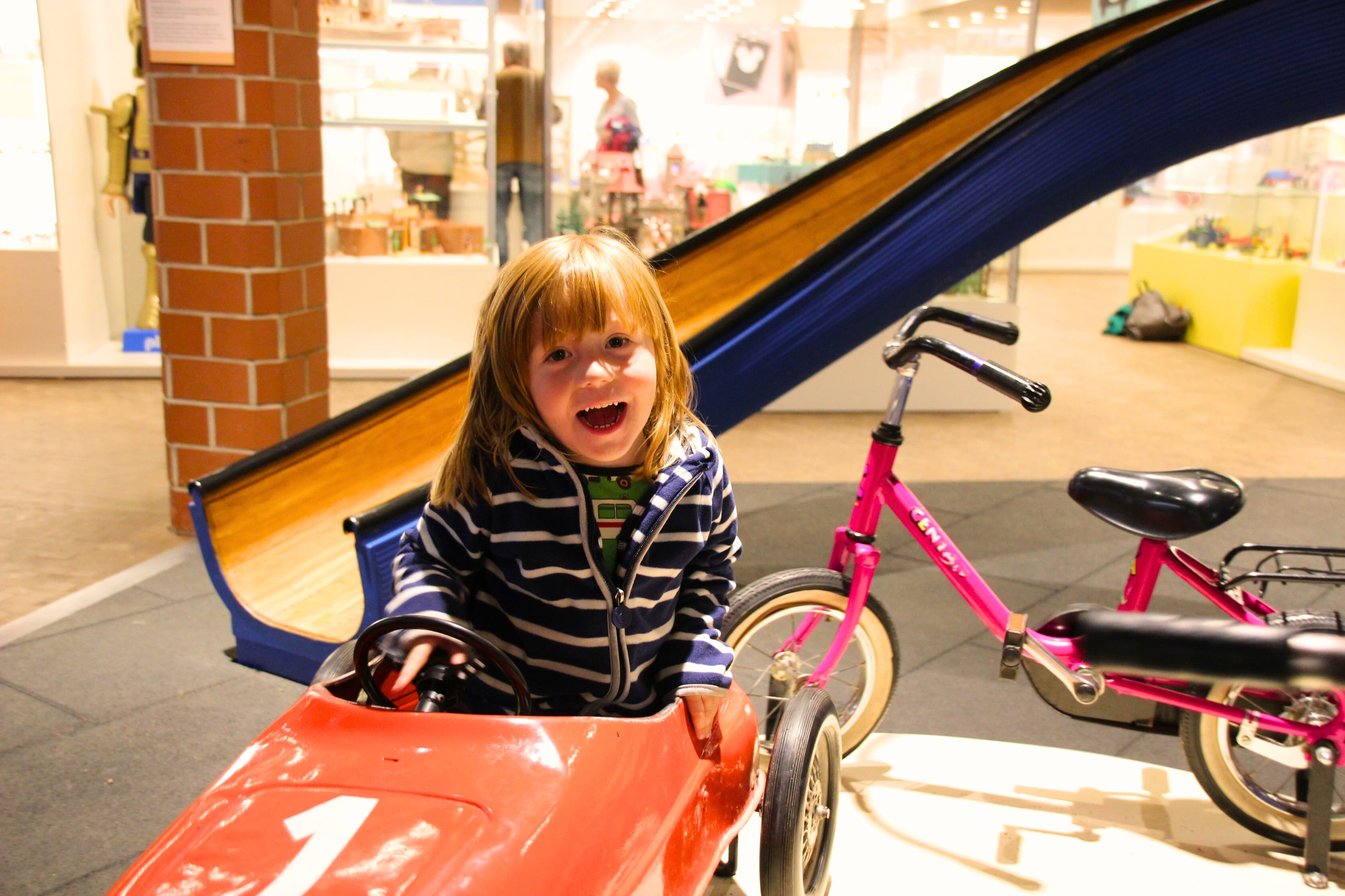 Besucher entdecken in den „Spielwelten“ außerdem ein Stück Regionalgeschichte: Inmitten der Dauerausstellung vergnügen sich Kinder auf der Rutsche und dem Karussell aus dem ehemaligen Harburger Schuhgeschäft Raczka. Der bekannte Hingucker weckt bei Mitarbeitern und Besuchern lebhafte