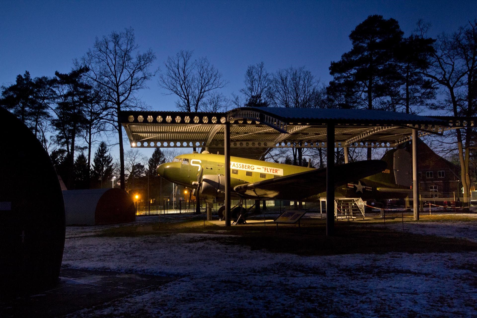 In drei Nissenhütten und zwei geschlossenen Eisenbahnwaggons veranschaulichen Originalunterlagen und Ausstellungsobjekte, wie das alliierte Räderwerk funktionierte. Komplettiert wird die Ausstellung zudem durch den "FASSBERG-FLYER", eine C-47 der US-Air Force, die in Faßberg zum Einsatz kam.