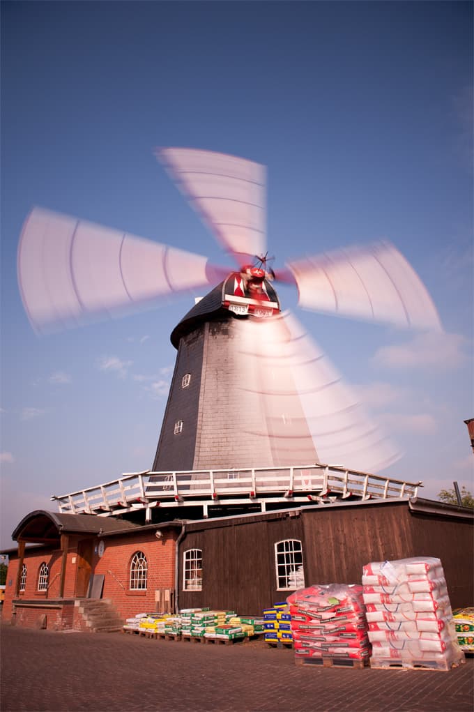 Ein grünes Warenhaus mit einem Naturkostladen sind das zweite wirtschaftliche Standbein des Betriebes. Nachdem die Mühle seit den 1950er Jahren flügellos und mit einem Spitzdach versehen war, konnte sie 1994/95 mit Unterstützung durch den örtlichen Windmühlenverein in einer umfassenden Restaurierung ihr altes Erscheinungsbild wiedererhalten.