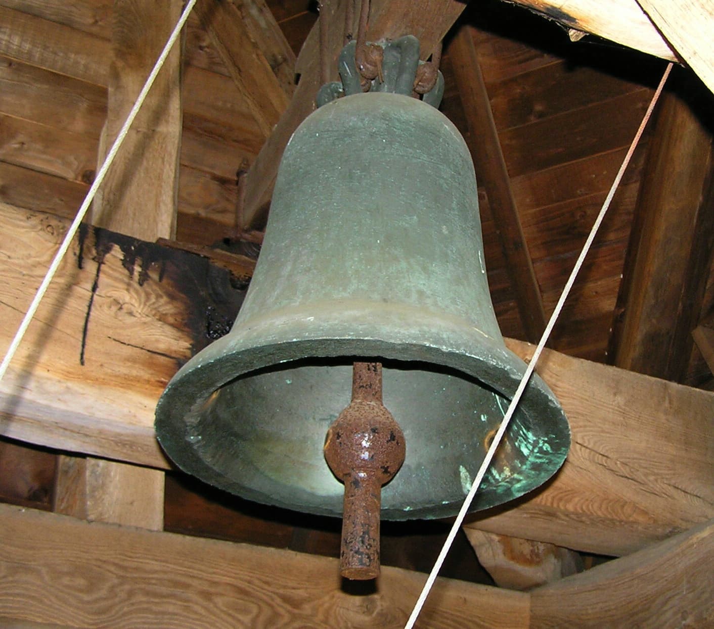 Diese Glocke hing ursprünglich im steinernen Glockenturm der mittelalterlichen Vorgängerkirche. Seit 1768 hängt die Glocke im hölzernen Glockenturm vor dem 1841/42 nach Plänen von Friedrich Hellner erbauten Kirchengebäude.