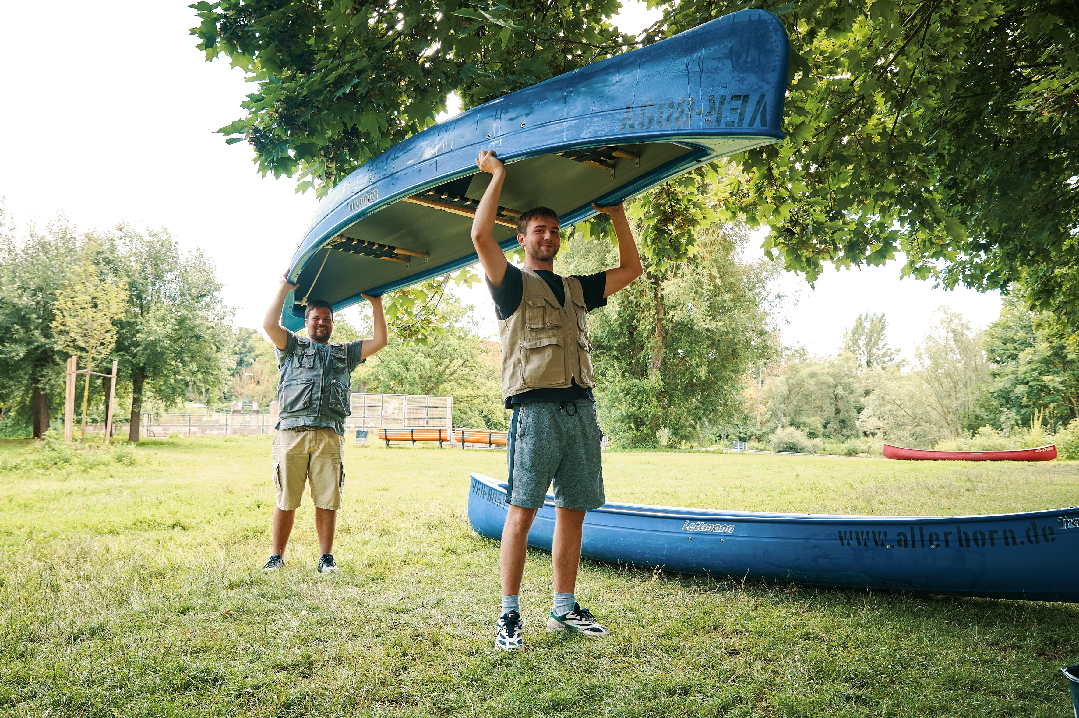 Radfahren: Der überregionale Aller-Radweg führt auf einer seiner schönsten Etappen durch die Flusslandschaft und bietet die perfekte Möglichkeit, die Region zu erkunden.Kanufahren: Am Bootsverleih Allerhorn können Sie stunden- oder tageweise Kanus und Kajaks mieten, um die Aller vom Wasser aus zu erforschen.