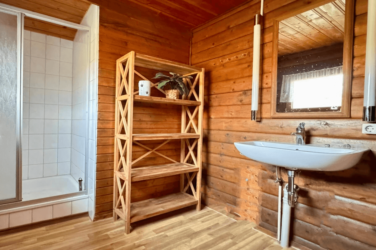 Unsere gemütlichen Blockhäuser bieten auf 65 m² Wohnfläche folgende Ausstattung: