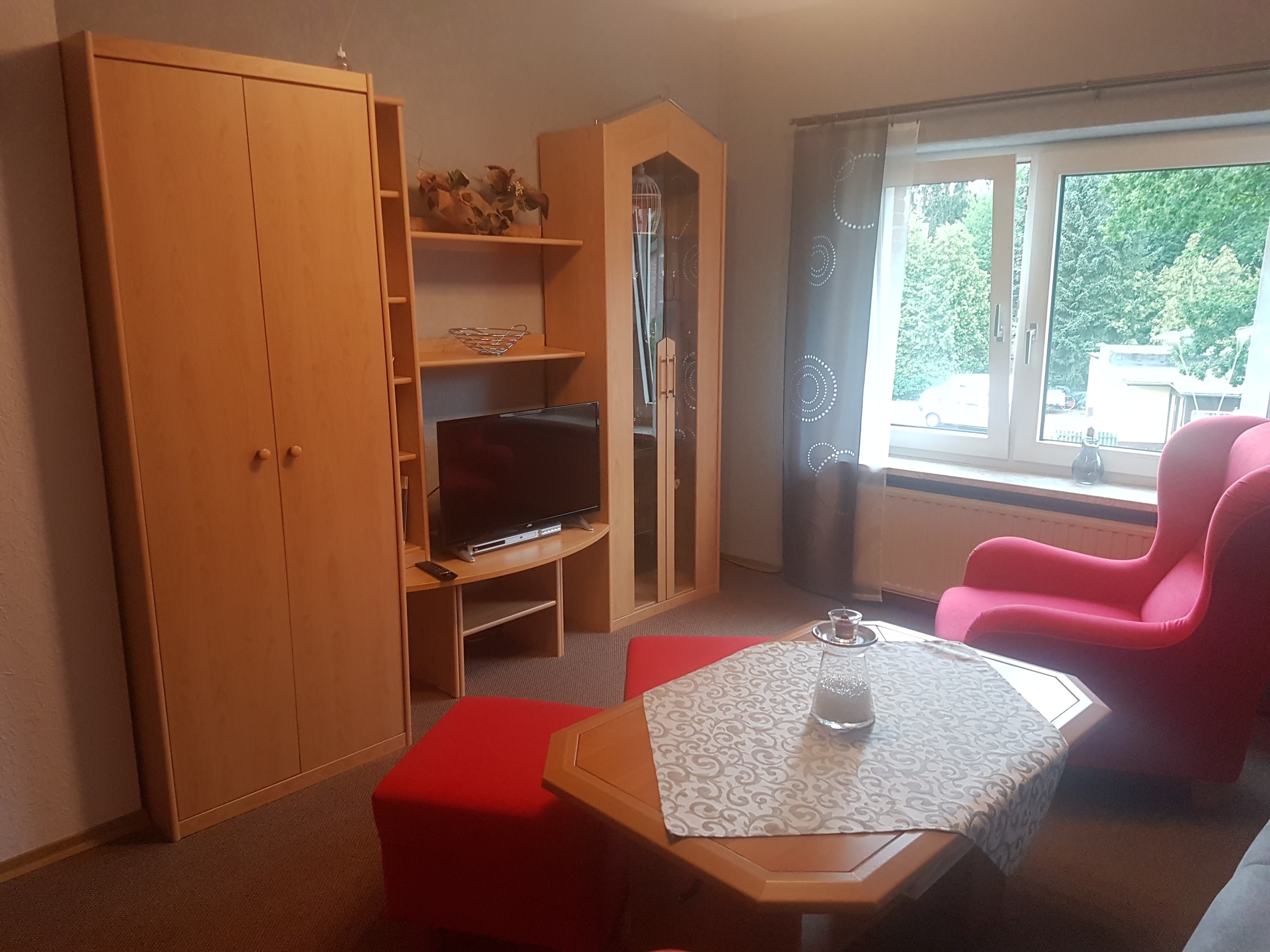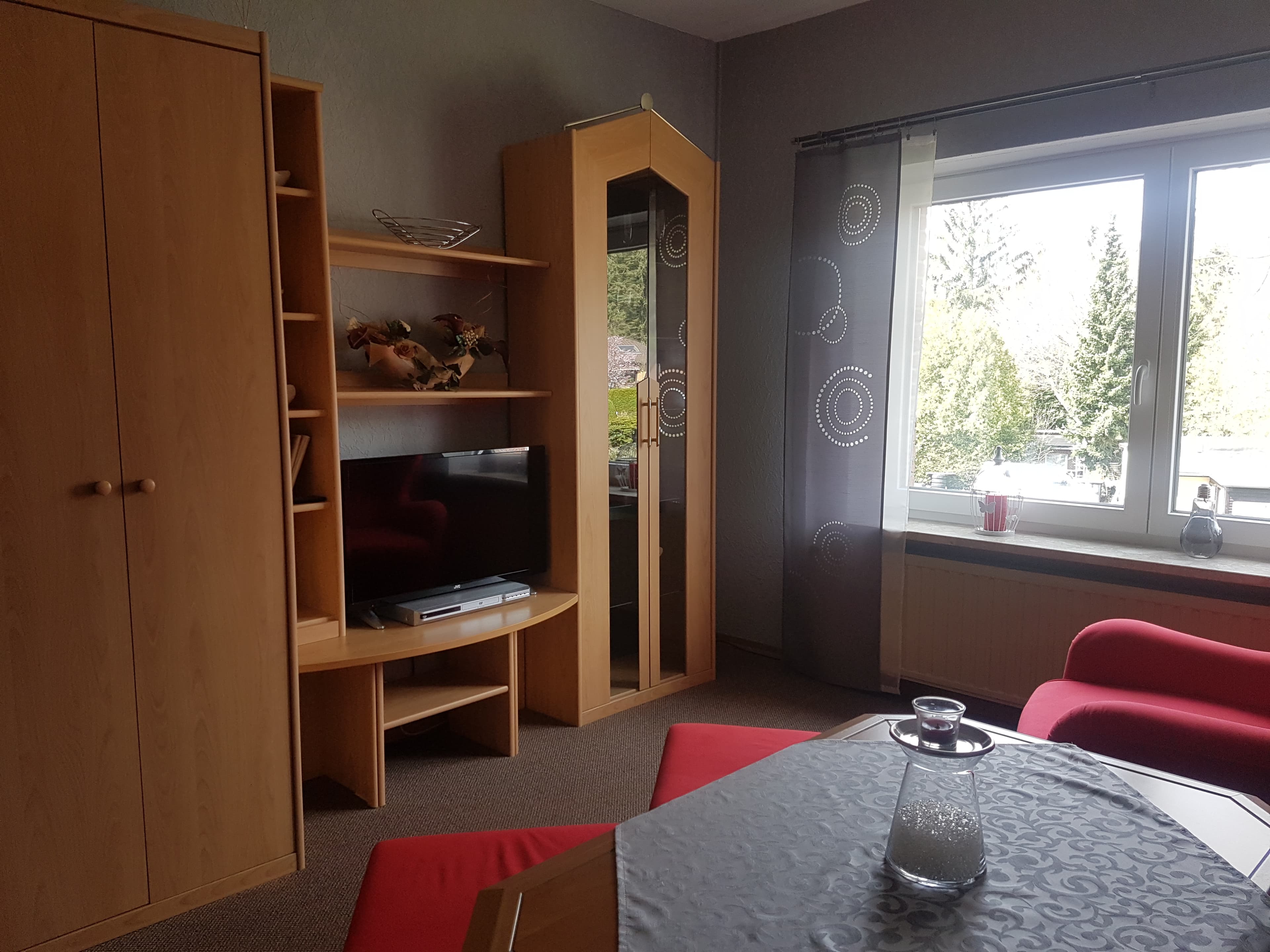 Wohn-Schlafraum: ausziehbare Schlafcouch, SAT-TV.