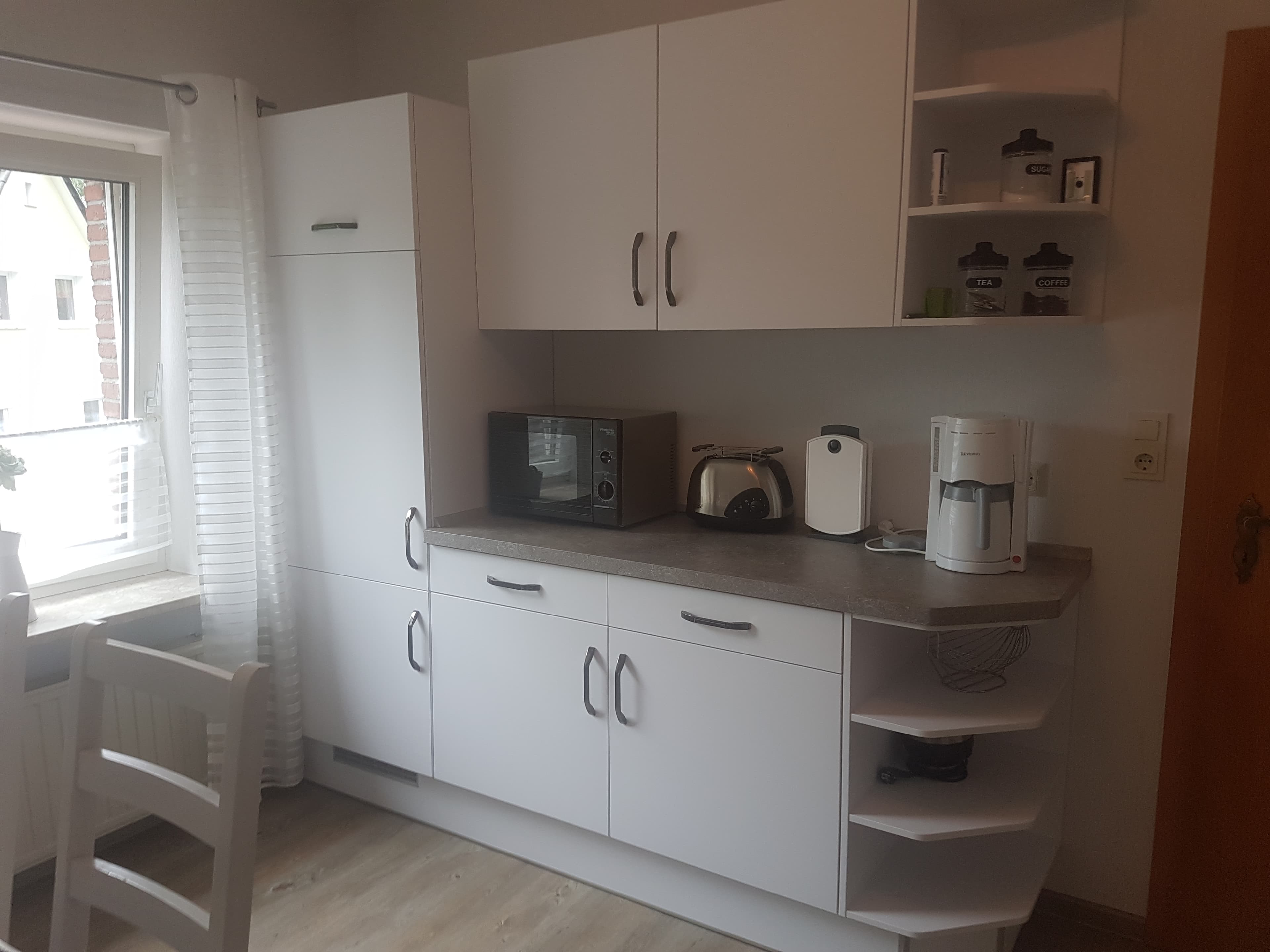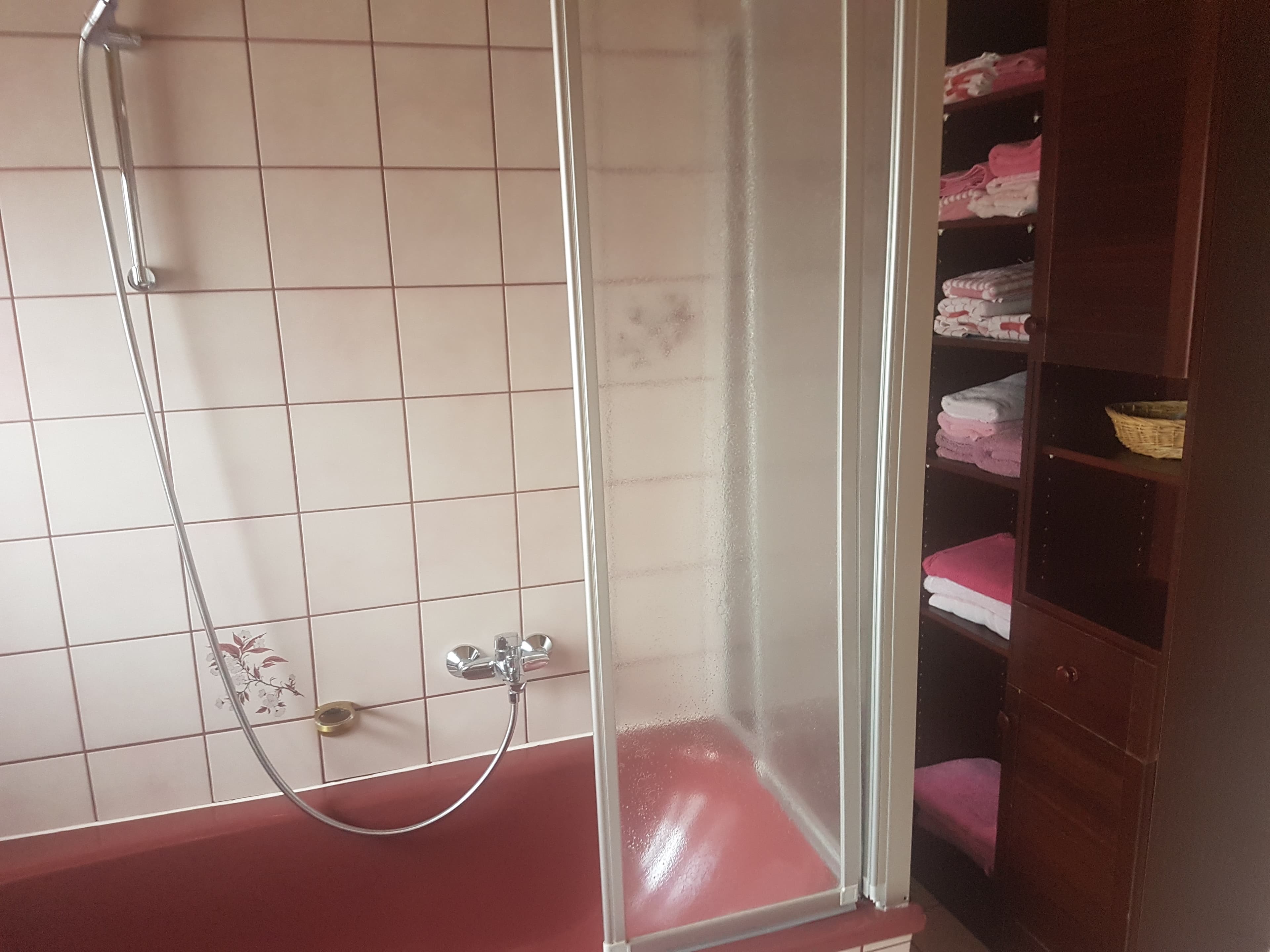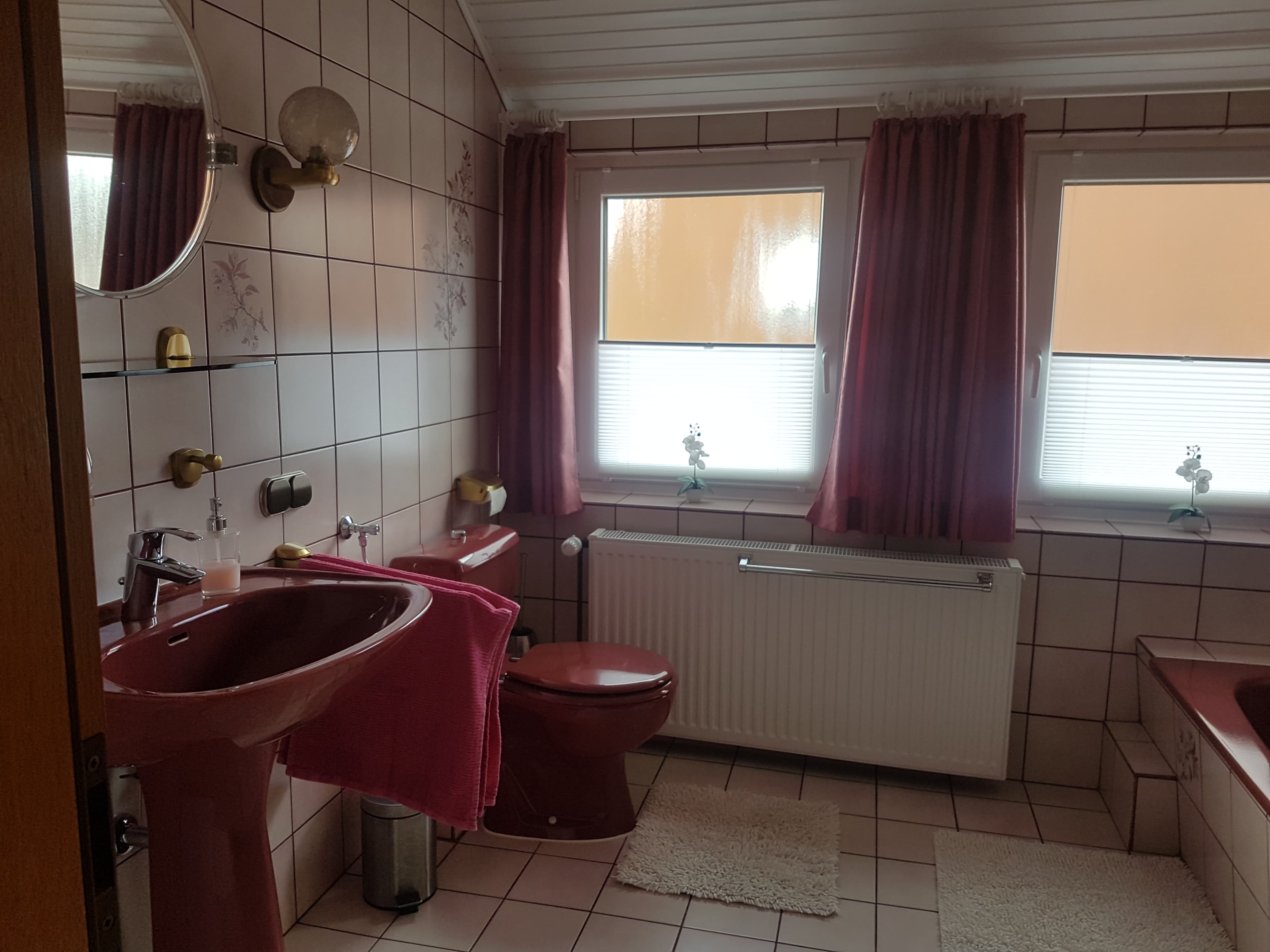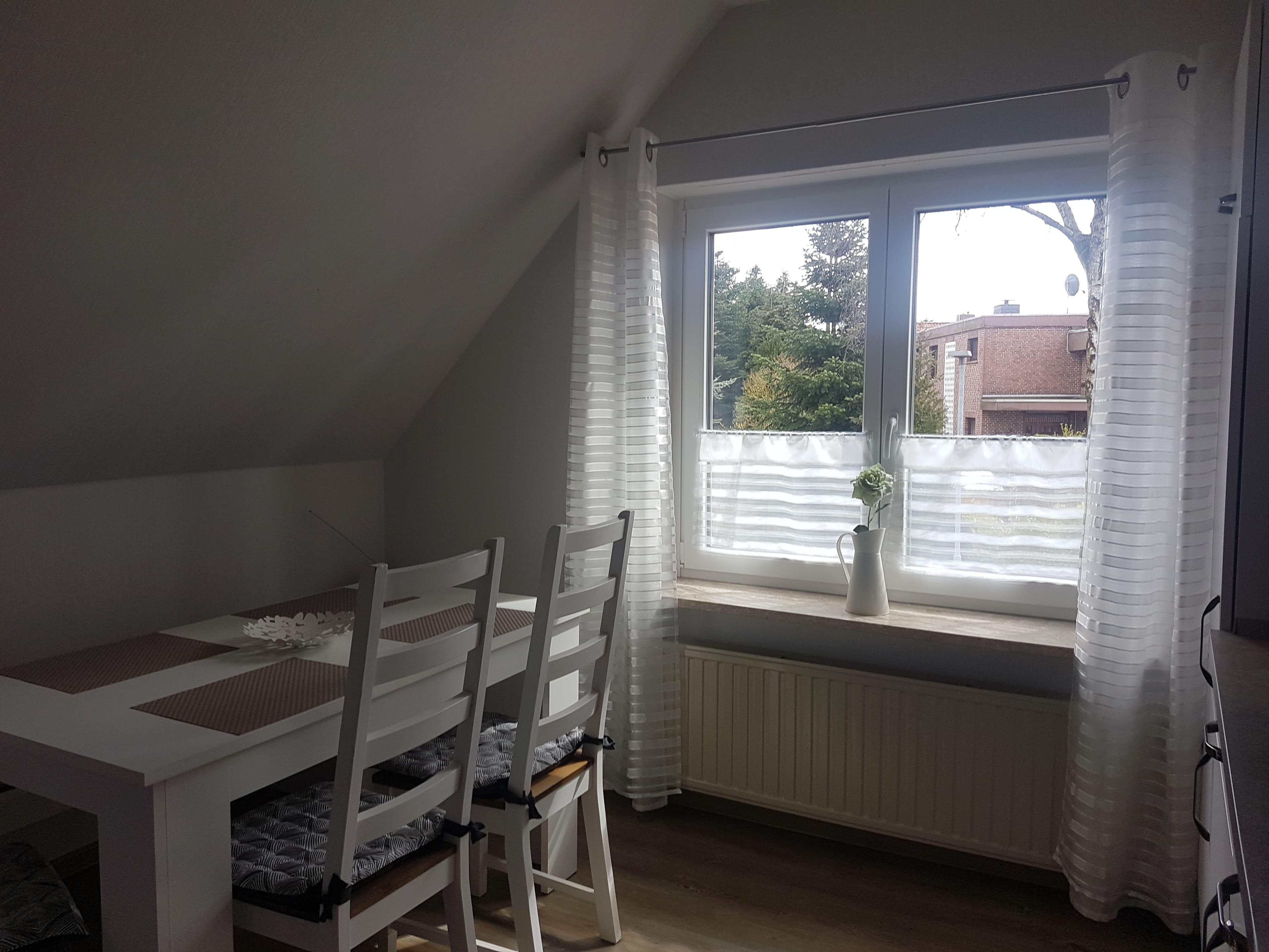Ferienwohnung im Obergeschoss, ca. 60qm groß; 1 Wohn-Schlafzimmer, 1 Schlafzimmer mit Doppel-und Einzelbett, Küche und Vollbad mit Duschvorrichtung. Gartenhaus mit Grillmöglichkeit, Autostellplatz, Fahrradverleih möglich, Sat TV.