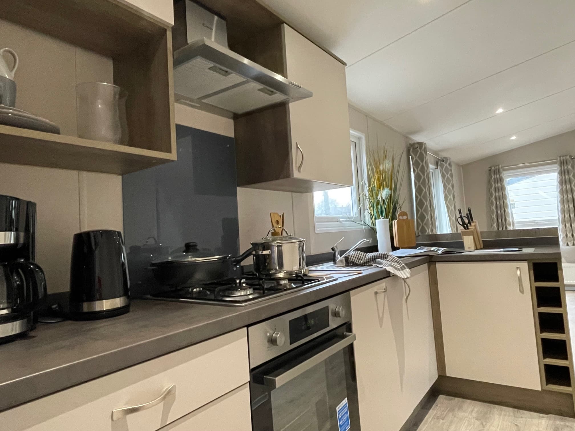 Die frei stehenden Chalets bieten Platz für 4 Personen + Kinderbett mit 2 Schlafzimmern. Sie sind komplett eingerichtet mit Küchengeschirr, Kühlschrank, Mikrowelle, Sat-TV und WLAN, Duschbad und separatem WC-Raum.