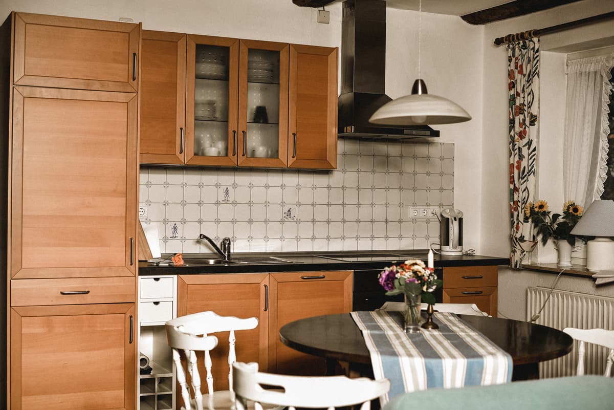 - Küchenzeile (komplett mit Backofen und Geschirrspüler) und angrenzender Essecke
