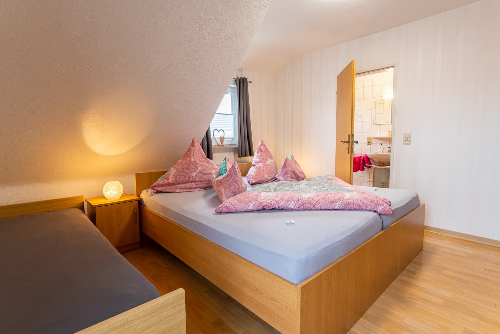 Bei uns können Sie 3 Doppelzimmer mit DU/WC noch hinzumieten.
