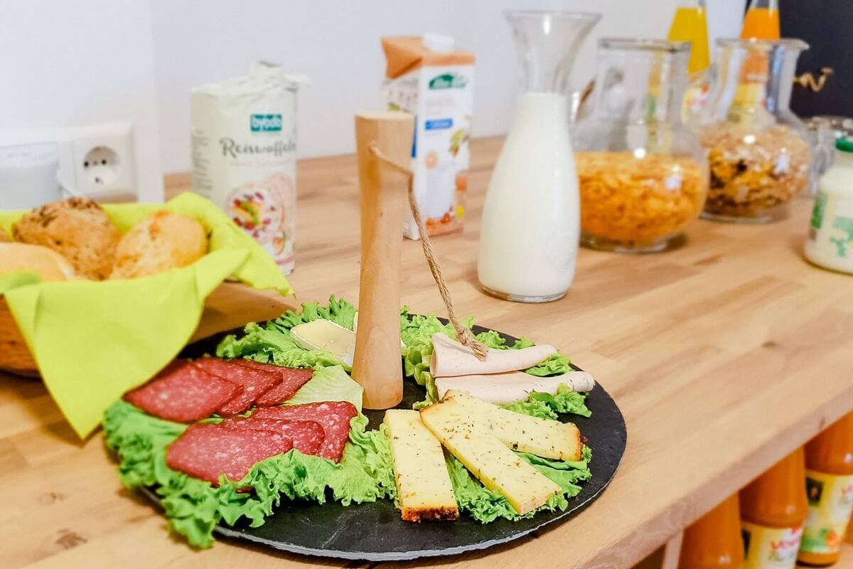 Aus Respekt vor dem Wert von Bio-Lebensmitteln wird auf das übliche „reichhaltige Frühstücksbuffet“ verzichtet. Stattdessen wird ein leckeres Frühstück, ausschließlich aus Bio-Zutaten freundlich am Platz serviert. Dieses garantiert einen guten Start in den Tag ohne Verschwendung von Nahrungsmitteln.